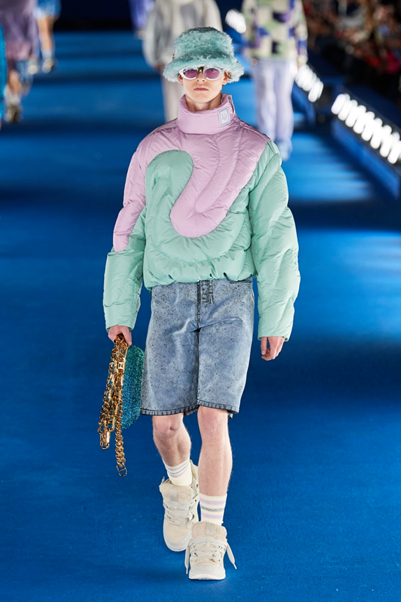 在设计方面,Kim Jones和Eli Russell Linnetz在服饰、鞋履和配饰等引入巧思,呼应此次主题,比如象征着海水的蓝色、如夕阳般的红橙色令人眼前一亮。