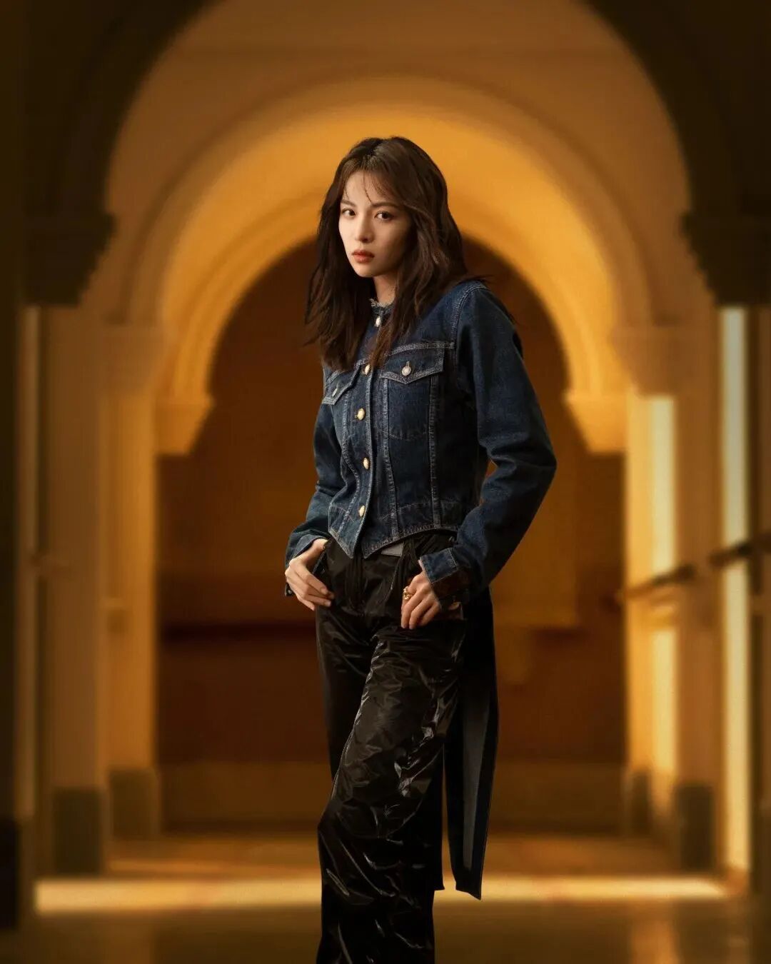 大秀由去年底火爆全球的《鱿鱼游戏》女主,同时也是新晋品牌形象大使的郑浩妍开场,白衬衣、条纹阔腿裤、棕色皮夹克、花领带,这样的复古造型颇有点上世纪80年代雅皮士的味道。