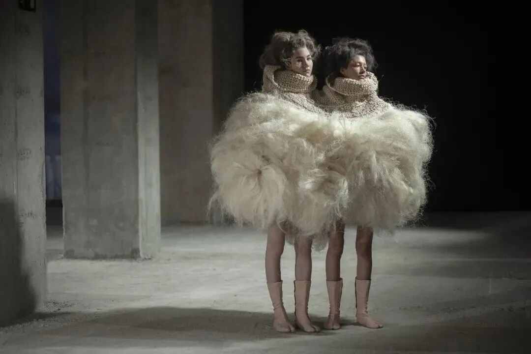 这种方式相较于研发、制作或是改造全新材质更为简单,无需前沿科技的介入,床单、裤袜、窗帘……任何二手的衣物和面料均可在设计师的手下被赋予新的「生命」。