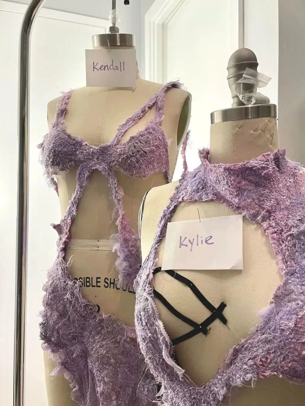 今年4月,Kendall Jenner和Kylie Jenner姐妹在社交媒体上晒出的两套紫罗兰色镂空连衣裙,便让不少人认识了REN这个独立设计师品牌。这些时装的面料都是以回收或是滞销的蕾丝,通过独特的刺绣工艺再制成,其中便有来自不同时间、不同地区生产的面料材质。
