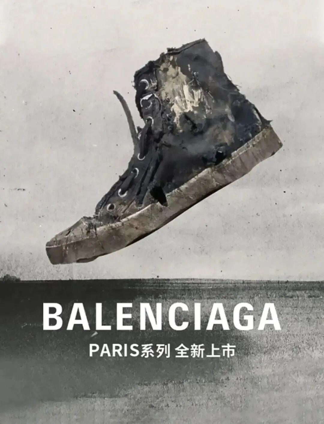 随后,官方再次公开发布了「Paris Sneakers」全新系列的新配色宣传图,Demna Gvasalia以前卫的末日美学的概念推出了多款「破烂鞋」。这款「破烂鞋」的鞋身极致做旧加上破洞,中底还印有巴黎世家品牌Logo加深破坏感,鞋子的整体更是严重变形。