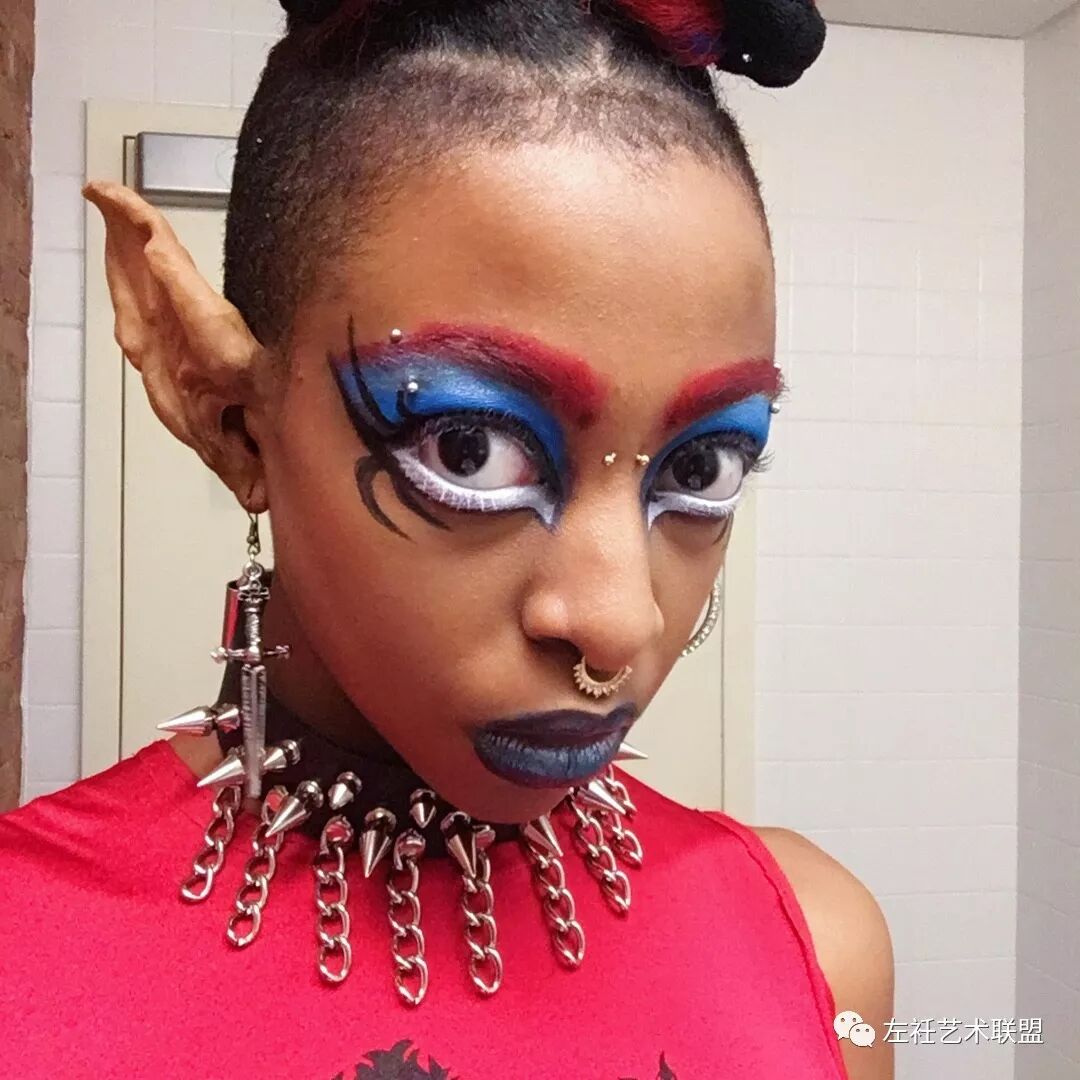 视觉上看,Tomasyn Hayes可以看作是避开了教科书上的美丽,她的耳朵呈锐叫,额头上有尖锐的刺,夸张的表情与五彩斑澜的脏辫象征着对摇滚朋克的狂热,极具玩味!
