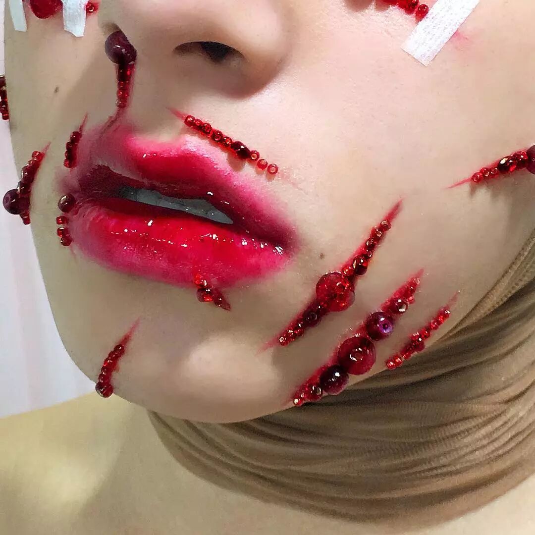 艺术家Austin Smith毕业于芝加哥艺术学院(the Are Institute of Chicago),他在互联网和现实世界里展示他的作品,走这种特殊的路线,而不是为了传统意义上的漂亮:“我从来没有把化妆看作是用来放大自己美丽的东西,我需要看起来可怕而更有趣,血液、瘀伤或者污垢是最好的化妆品”。