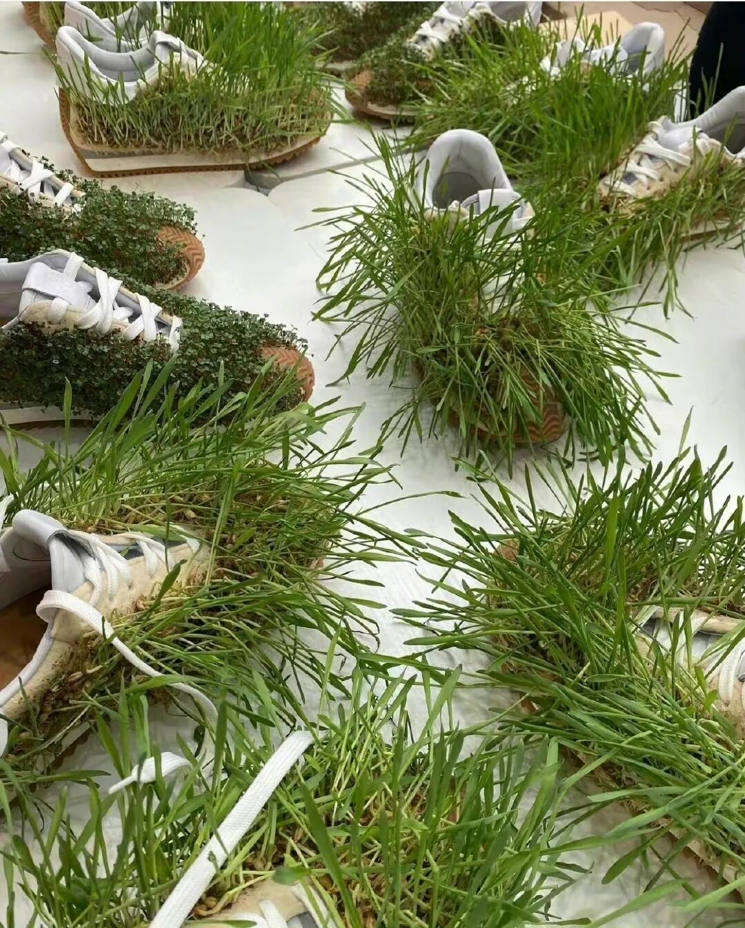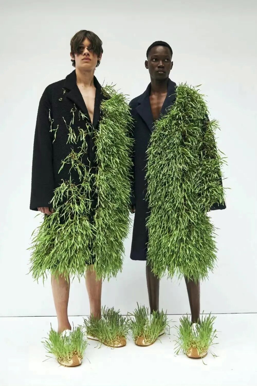 最引人注目的就是Loewe,直接将植被覆盖在服装上,其他的设计师将自然的色彩用多种形式转化,成为造型之中的点睛之笔。