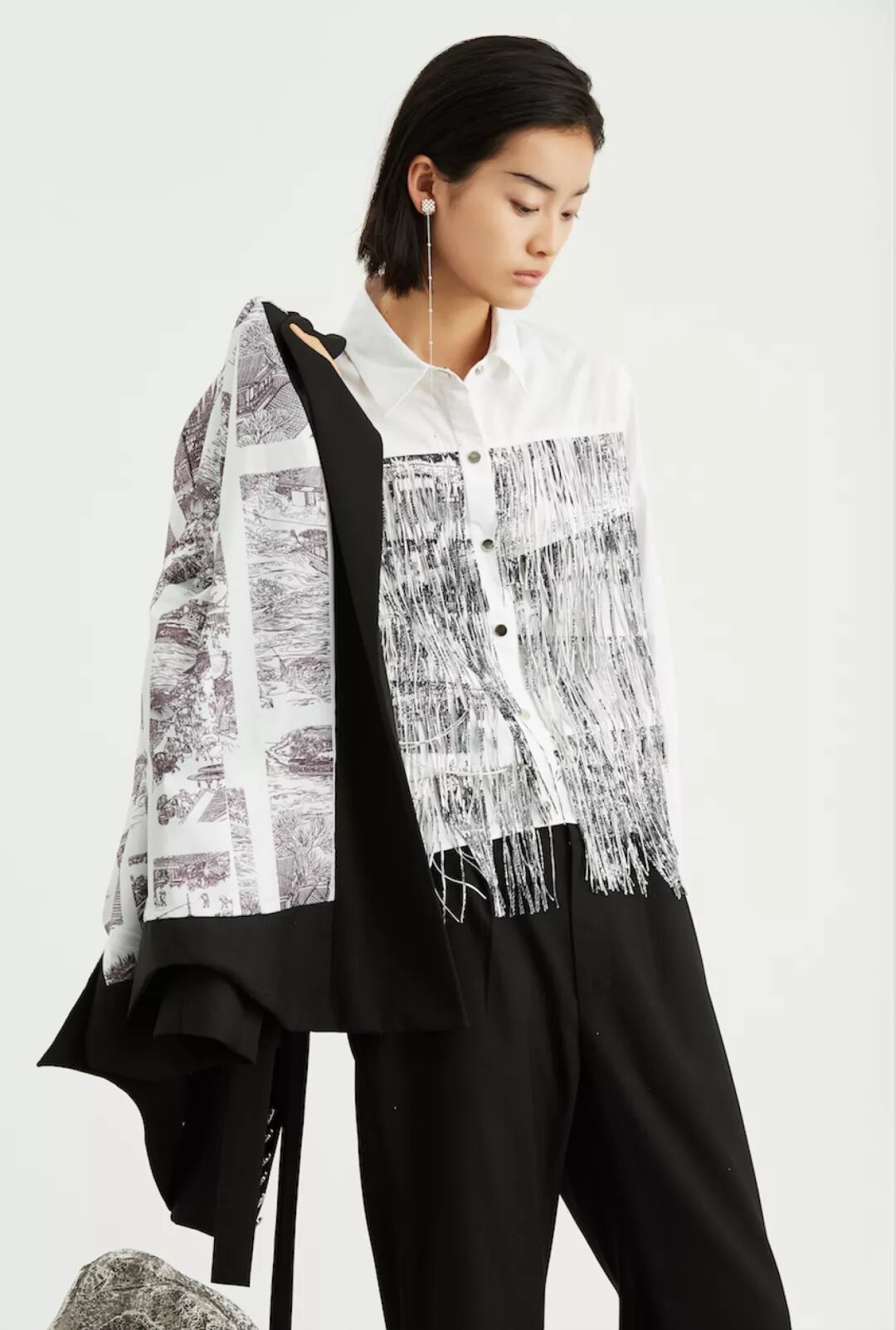 刘小路,以明代通袖袍吉服中飞鱼纹样的祥禽瑞兽文化为原点,将极具趣味与传奇性的故宫博物院藏品 《海错图》灵巧地搬到衣服上。珍奇海错,祥瑞巧趣地藏匿于衣角之上。系列延续了设计师副牌 QDO 的 自然、野性、极简剪裁风。作为 deepmoss 的创意总监,设计师 Dido Liu 此次带来了轻盈而不失设计艺 术的“海错祥瑞”系列 22 件单品。