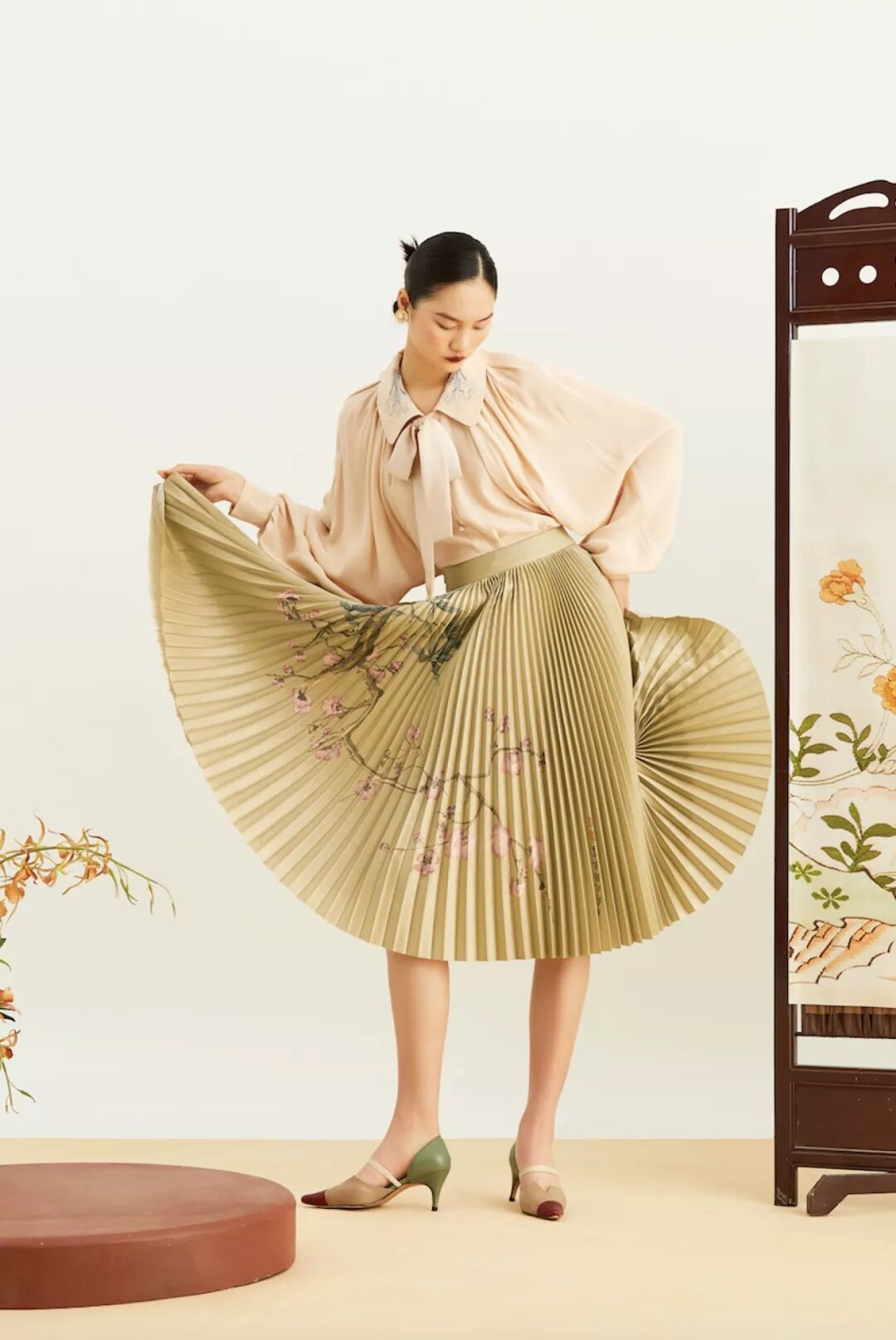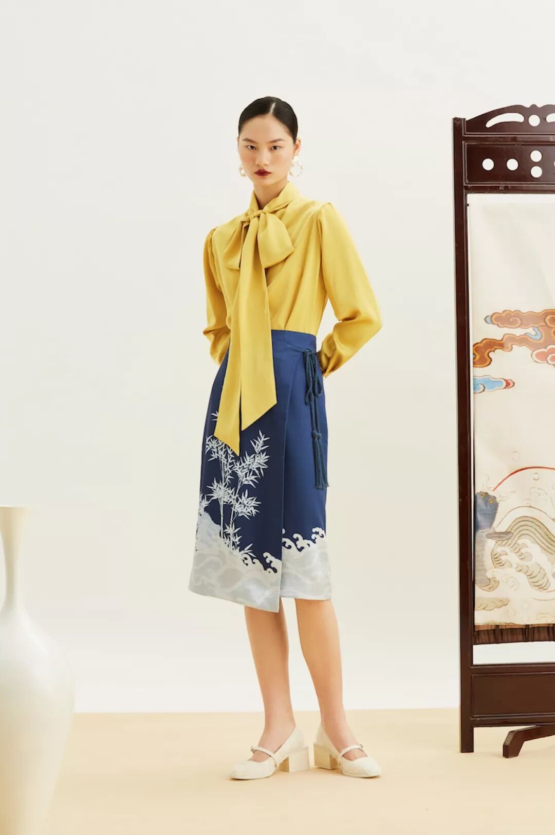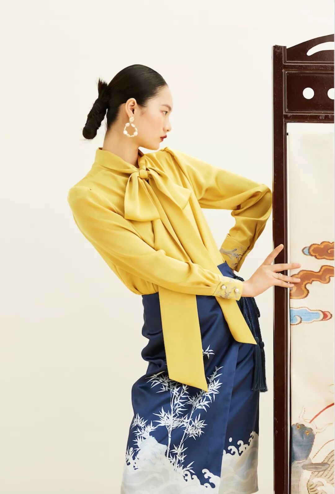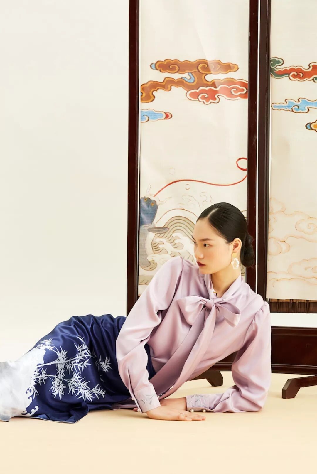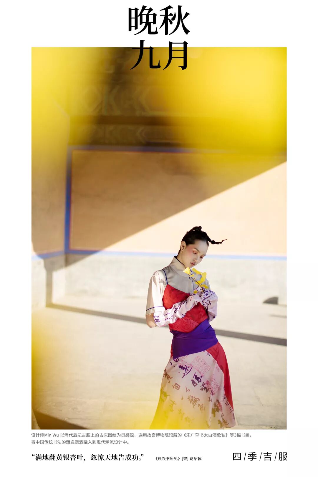 吉服好运核心综述:“书画”是清代后妃吉服上的吉庆图纹,设计师 Min Wu 选用 3 副故宫博物院馆藏 书法绘画作品,致意吉服好运。