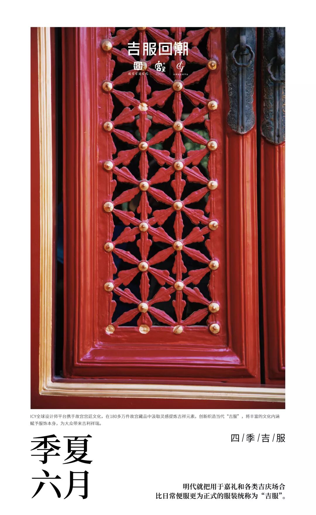 2019 年 3月, ICY 全球设计师平台联合故宫宫廷文化,发起“吉服回潮”的传统服饰文化复兴行动。
