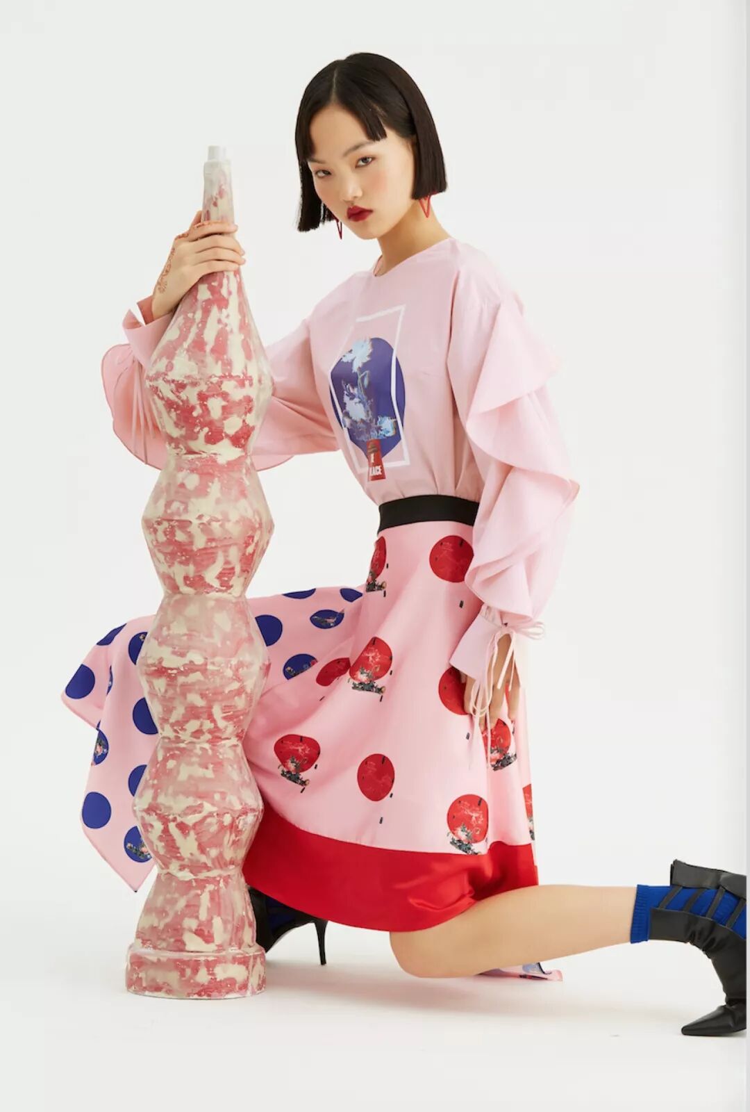 在花之柔、筑之刚中,融入现代图像解构及数码平面式设计手法,延续设计师一以贯之的少女风,带来甜酷兼备的单品。