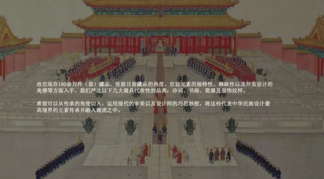 这次五位中国独立设计师参与设计,在180多万件故宫藏品中汲取灵感提炼吉祥元素,创新织造当代“吉服” ,将丰富的文化内涵赋予服饰本身,为大众带来吉利祥瑞。而“吉服回潮” 正是中国新设计力量带来的一场穿越百年的文化追寻和服饰文化的当代复兴。