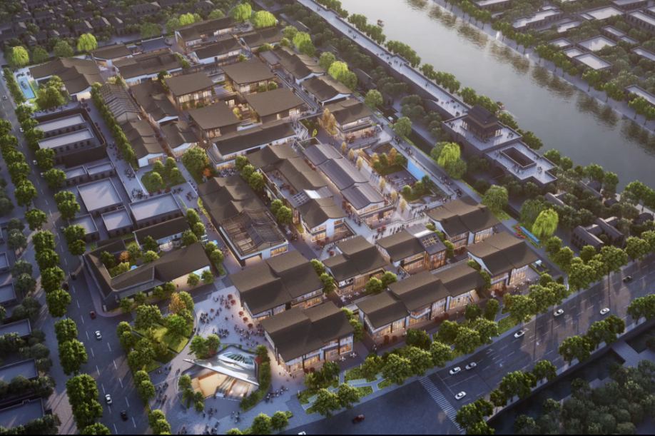 仁恒仓街是其中比较有代表性的一个。它位于平江历史文化街区一侧,可谓占据了苏州最为精华的一片老城核心,与城市文脉耦合。项目体量约14万方,整体建筑形式与景观参考了江南传统建筑与苏式园林,一方面契合所在片区的整体风貌,另一方面也体现了在地文化与现代设计风尚交融的创新表达。