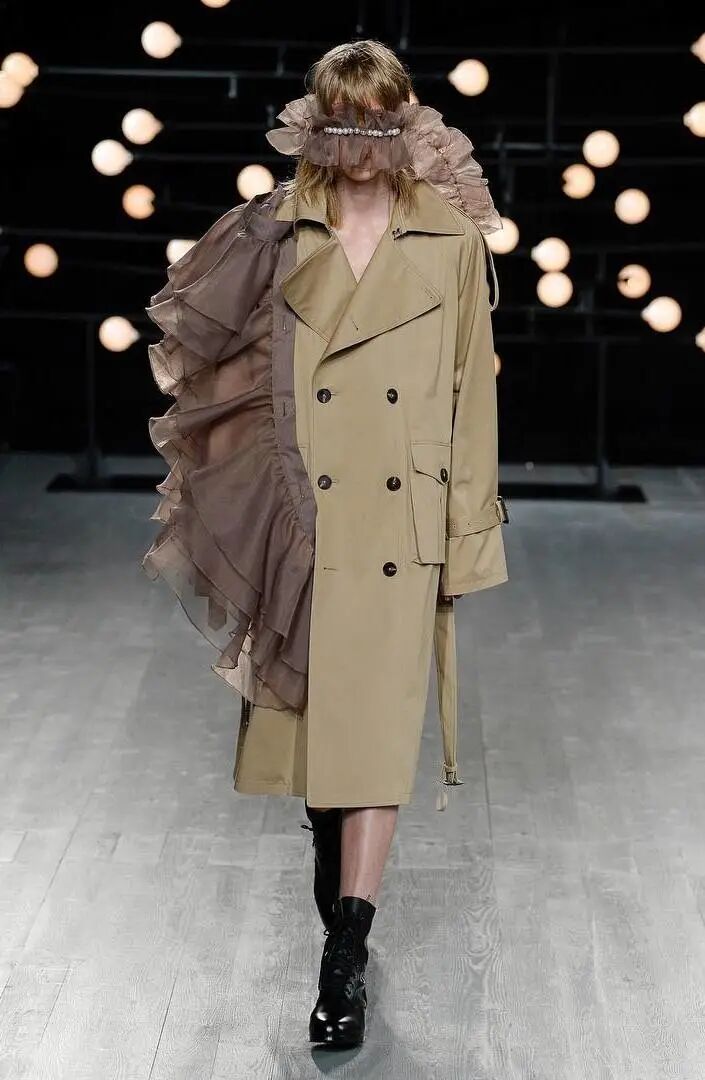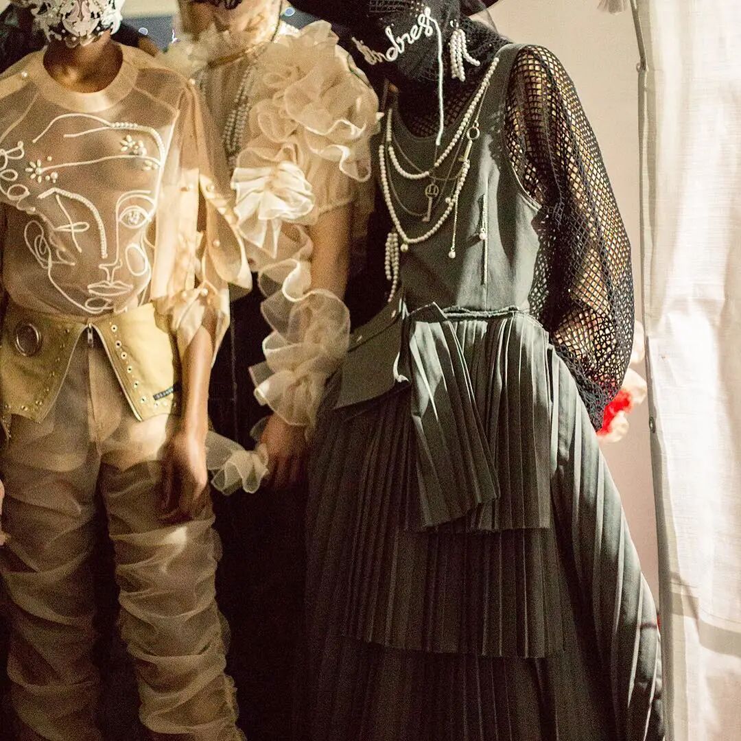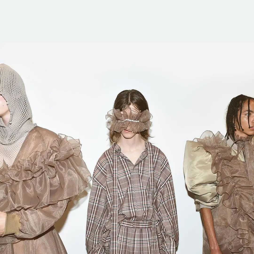 2019春夏系列充斥着浪漫主义的巴洛克风格并且有一股很浓厚的英式上流社会感觉。华丽的薄纱点缀和精致的珍珠镶嵌搭配上刚刚好的效果,就像是用服装去描述了英国绅士。用各种头罩去模糊模特性别,让人第一眼容易产生错觉,并且使用了各种珍珠,荷叶边,纱质透明面料抽褶等手法进行装饰。