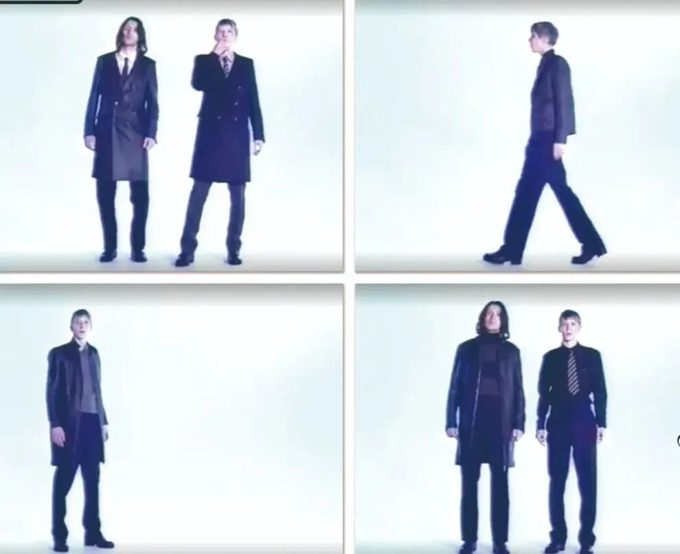 1995年到1999年是Simons设计风格的第一个阶段,落肩西服,轮廓窄紧,与垂坠盖过脚面的裤子,满屏幕代表着反叛的黑色是他首个系列的延展。