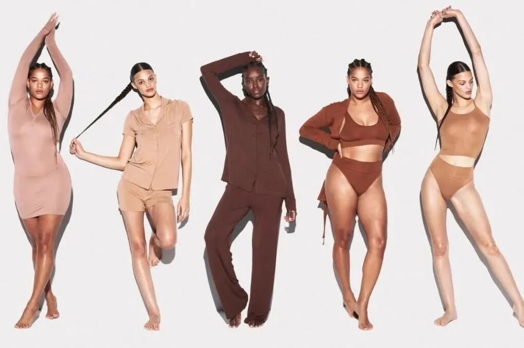 起初,Kim想将品牌命名为「Kimono」,日文中意为「和服」,引起很多负面评价,于是迅速更名为SKIMS,首季单品中,Bodysuit连体衣不方便的设计和质量,也使其陷入「网红品牌」的质疑声。
