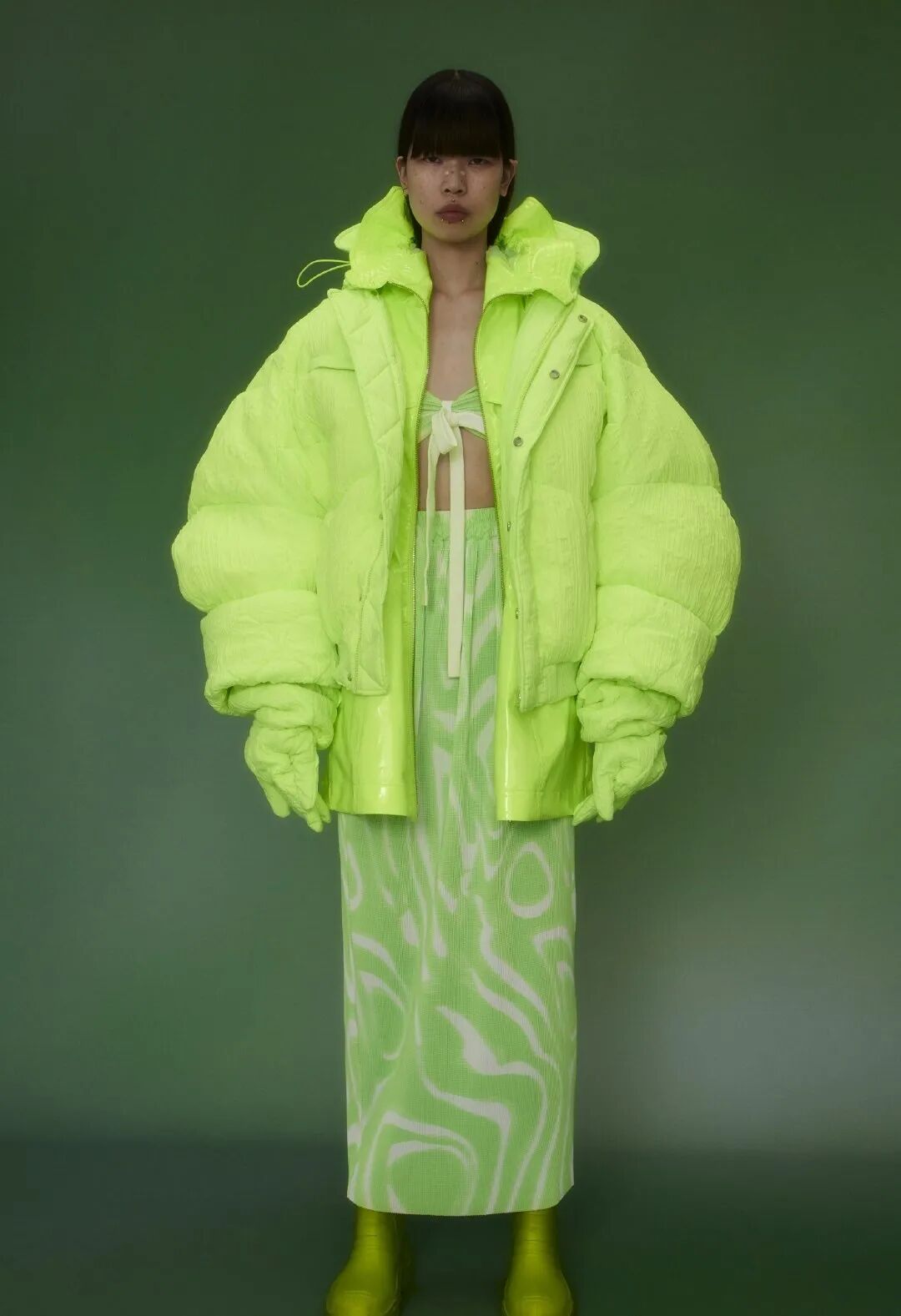 One-Size Fashion的时尚概念,也给予品牌无性别,无人种差异的定位,蓬松的羽绒服在兼顾美丽的同时,还注重服装的功能性,又保暖又美丽让人不爱都难呢。