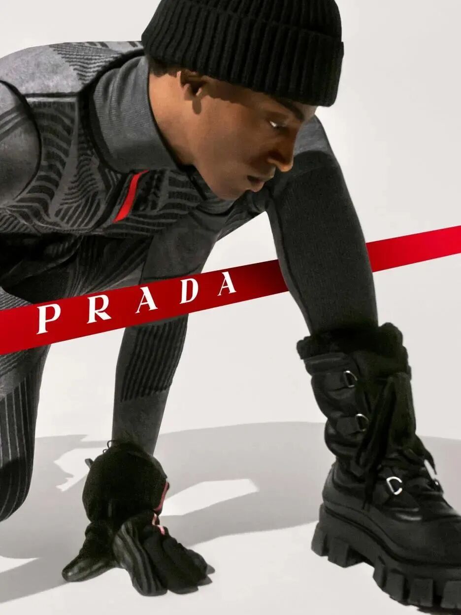 Prada旗下运动支线Prada Linea Rossa去年就已经推出过滑雪单品。Prada又和户外滑雪品牌ASPENX合作推出了滑雪系列胶囊。除了Prada红色标签牌之外,全身服饰以黑色条纹为主要设计,由艺术家Paula Crown设计。