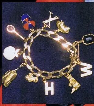 手链上的W字母,代表威廉王子;手链上的H字母,代表哈里王子;手链上的X则代表着罗马数字10,用来纪念戴安娜和查尔斯结婚10周年。