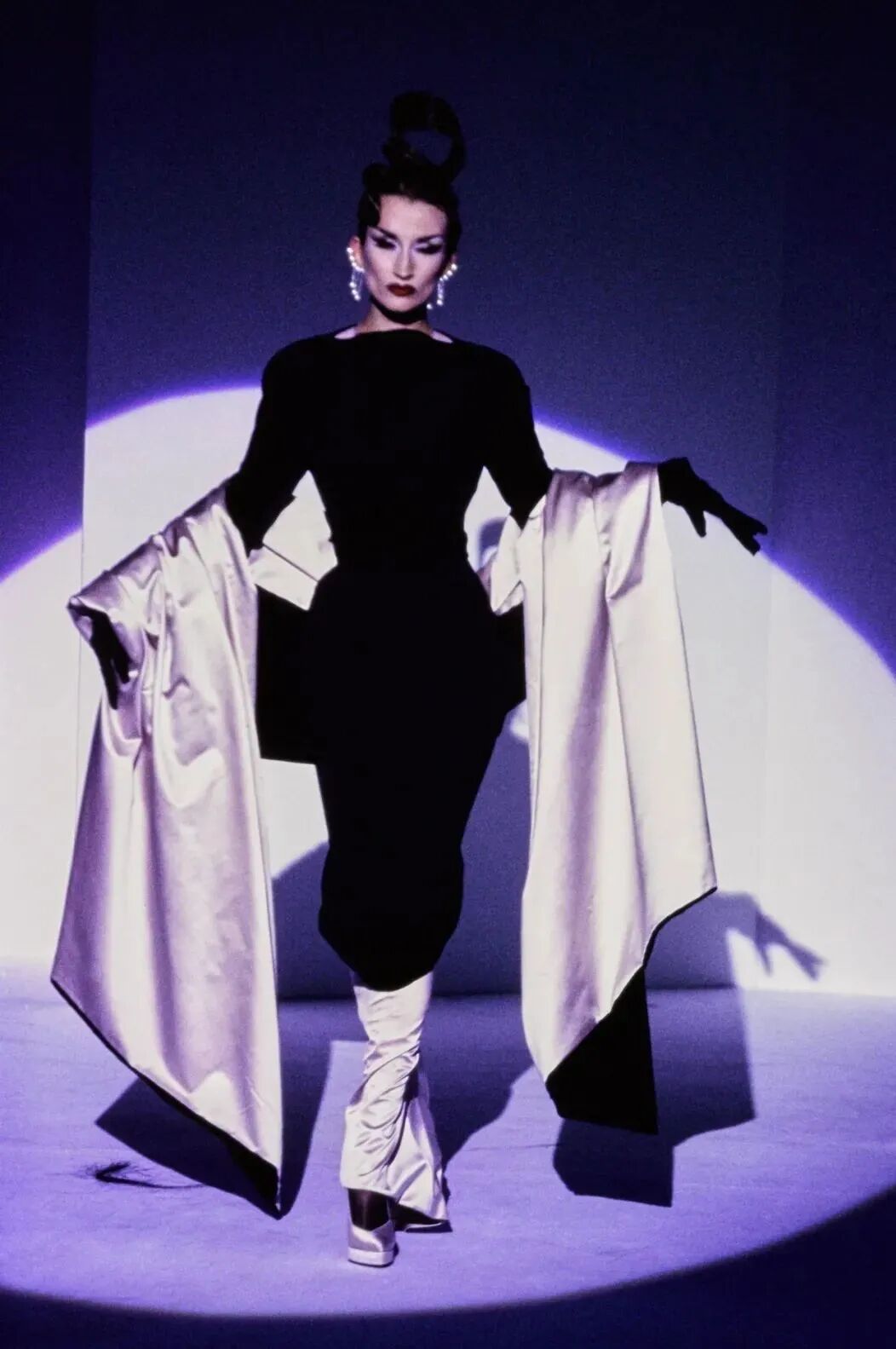 Thierry Mugler的设计集合了建筑、戏剧等设计风格,鬼魅夸张而充满未来感,成了 90 年代时装史上的传奇。