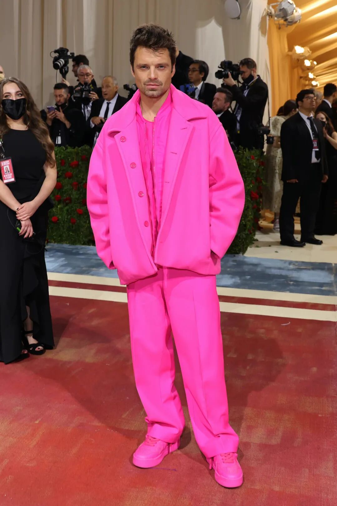 而在五月初的Met Gala上,以Sebastian Stan、Glenn Close和名媛Nicola Peltz-Beckham组成的「粉红军团」也给许多人留下了深刻的印象。