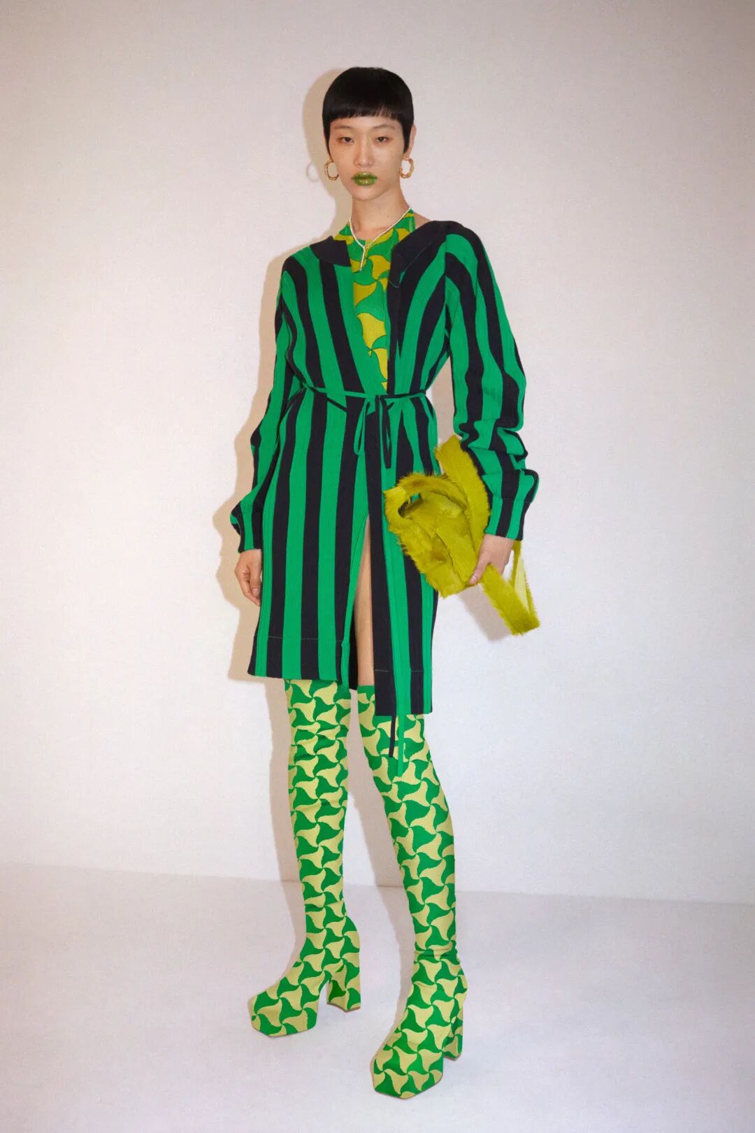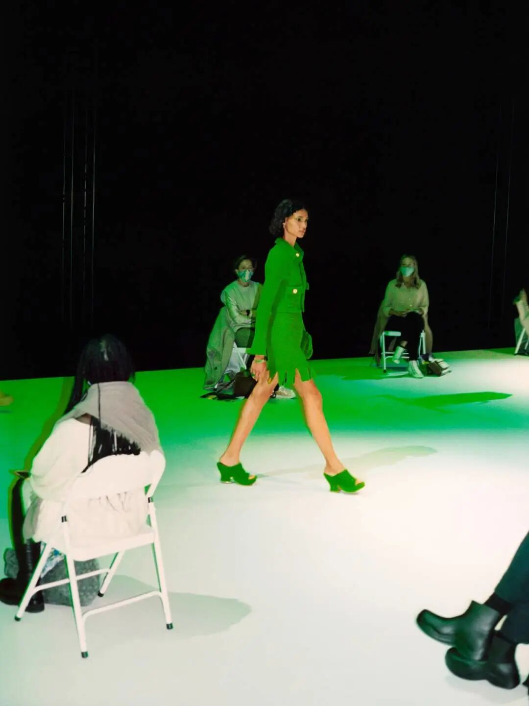 这两年火爆全球的BV绿也是一个很好的例子。作为Bottega Veneta的前任创意总监,Daniel Lee在单品或是秀场、包装中运用了极为有特点的绿色。他将BV绿大面积地包裹在品牌上,连同编织、羽毛等其他元素形成了一套具有色彩价值的品牌时尚资产,即使没有品牌logo的明显标识,也能让人立刻从颜色上反映出品牌。