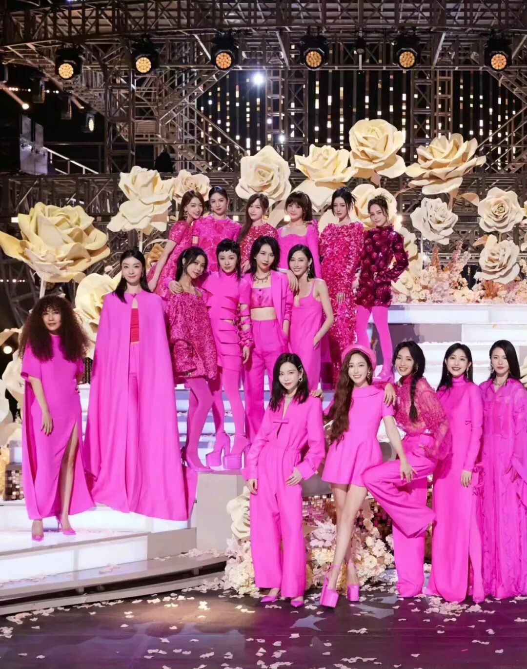 上周末,大热综艺《乘风破浪》迎来了总决赛。本次决赛,Valentino17位姐姐全体身着Valentino 2022秋冬系列亮相,铺天盖地的粉红色瞬间引发热议。