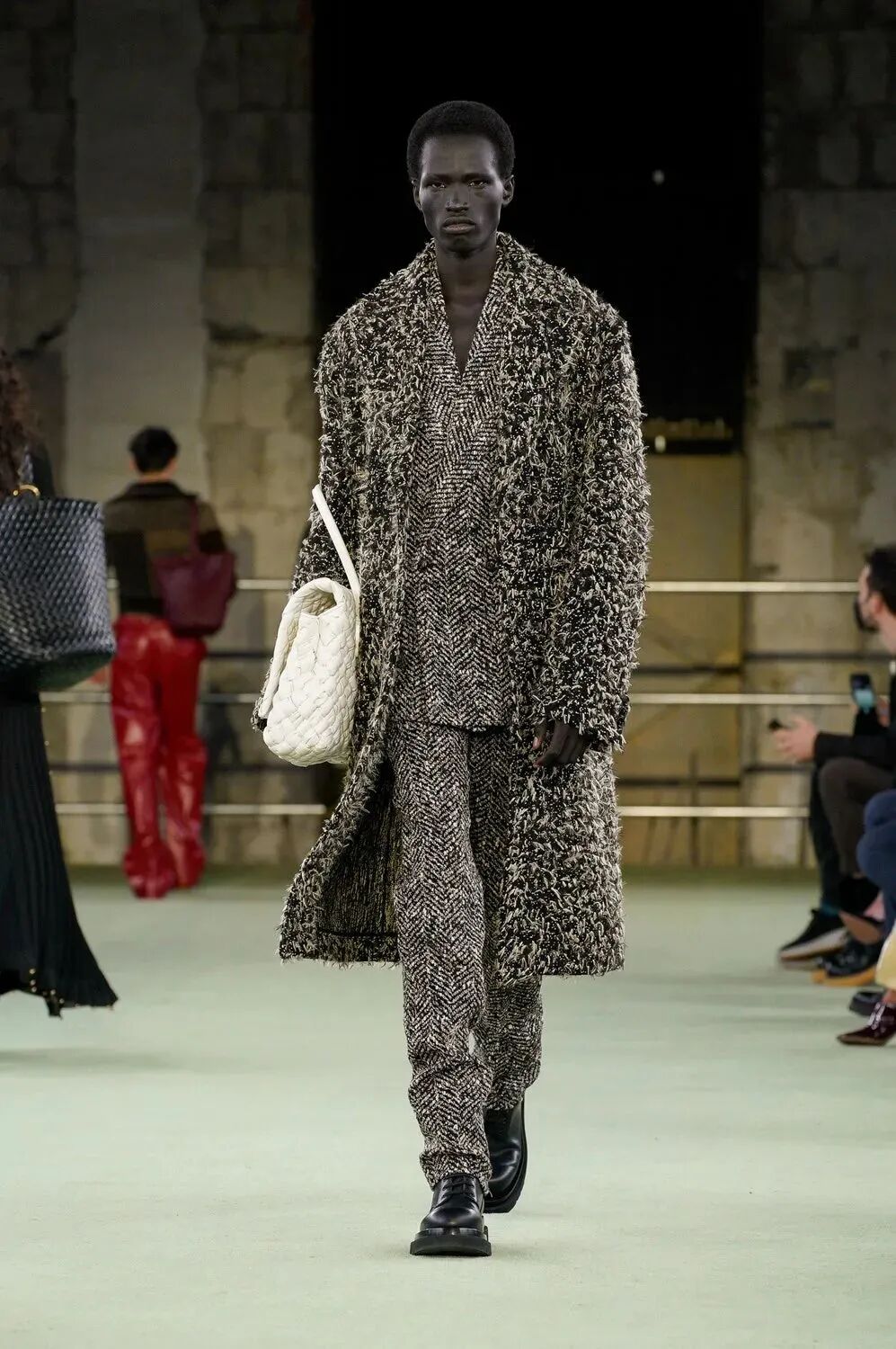再次回看Bottega Veneta本次大秀就能发现,如今的Matthieu Blazy正在以自己的方式诠释这座时装屋的经典风格内核,让服装因人的参与而保有温度,用丰富经验和多元文化艺术背景抒写着一个有关新时代的时装神话。