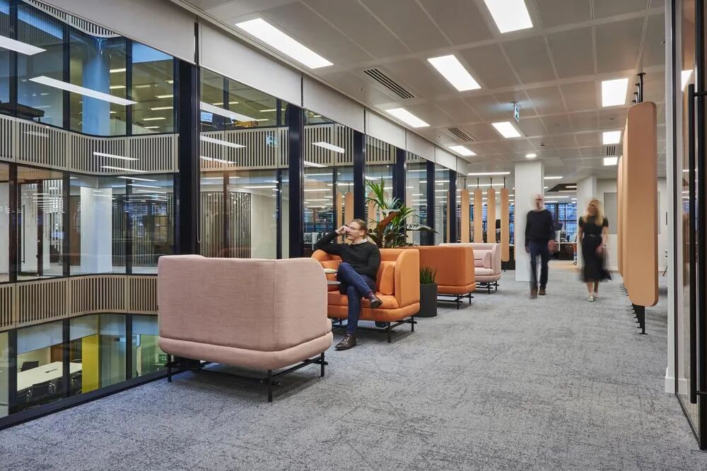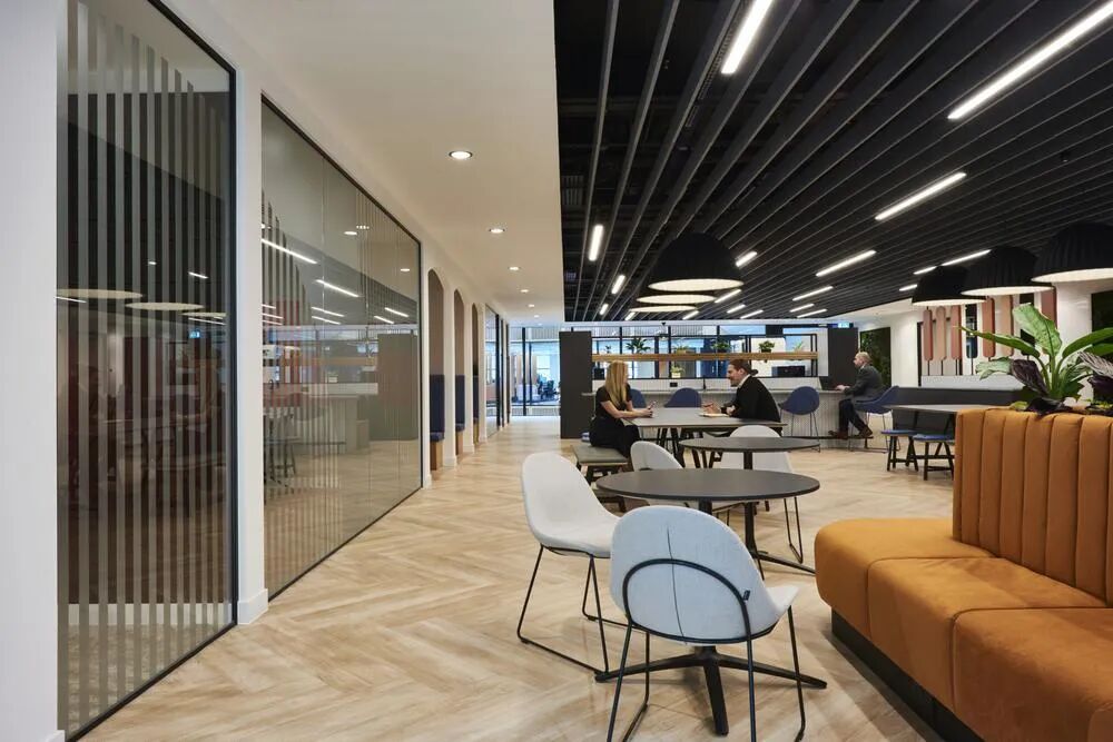 这些设置包括共享hot desking、1-2人专用的视频会议室、协作区以及正式和非正式的会议空间等。