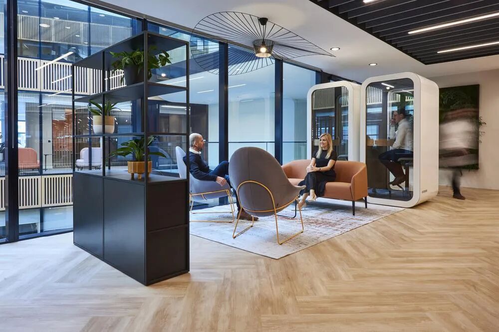 Workplace Creations设计团队以温馨配色和时尚家具,精彩呈现Berenberg(贝伦贝格银行) 位于英国伦敦的新办公室。