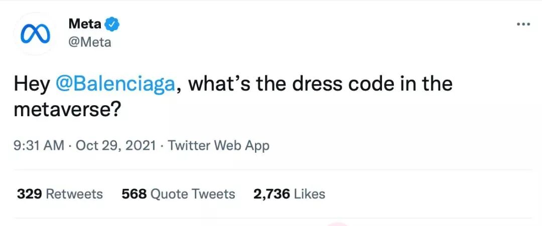 Meta单独“点名”Balenciaga可以看作是一个契机,虽然目前尚无证据证实Meta和 Balenciaga在未来会发生合作,但是两者的互动已经足够赚足眼球。