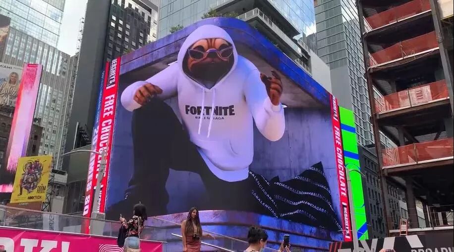 这次合作不仅仅存在于Fortnite平台的范围,甚至在线下也做了推广,纽约、伦敦、东京和首尔的3D动画广告牌上都曾出现过Fortnite的广告投放。