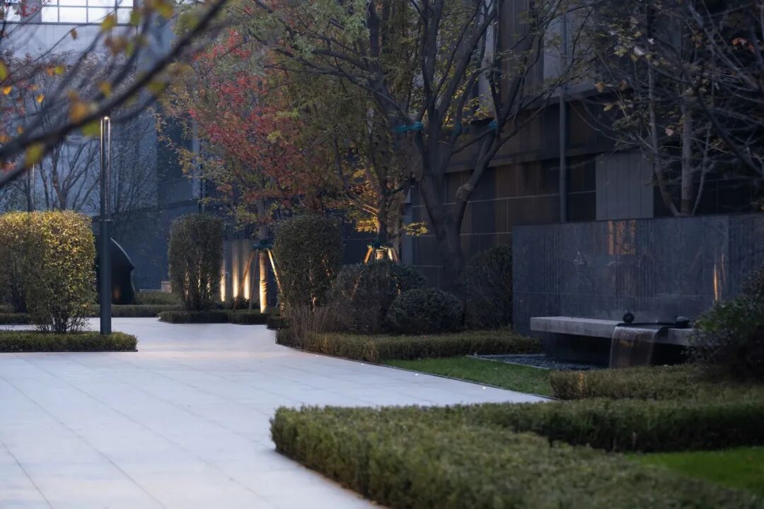 后场的整体空间在融入了大区整体构图后,从原先的酒店化场景变得更加的生活化。北方的树种也在秋季的加持下,既有南方树种的细腻,也保留了北方特有的刚劲。一切犹如有个惊心布置的庭院,每一处空间仿佛都没有被浪费。