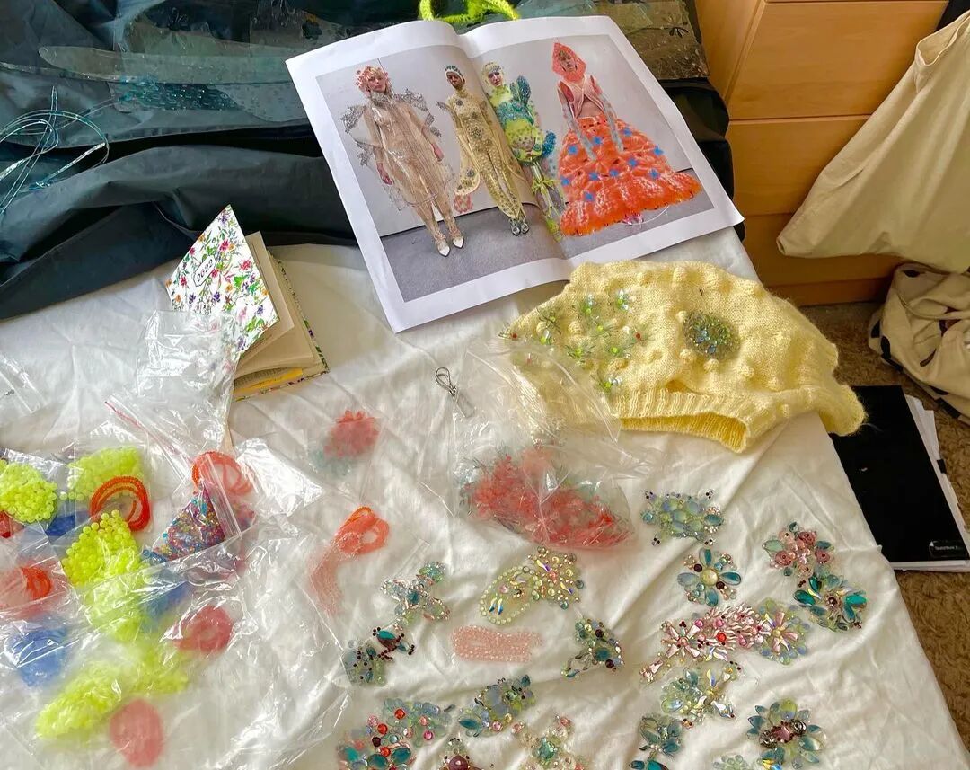 “因为我小时候是个淘气的女孩,我的校服经常被我破坏,然后再用别针‘缝’起来,我复制了校服的颜色和别针……整个设计几乎没有用缝纫机,全是手工制作而成。”这也奠定了她创造品牌的开始。