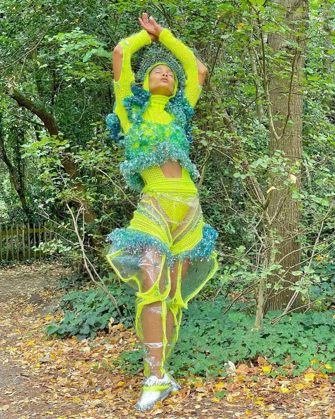 Mata一直在探索生物塑料材料,如淀粉/水果和果冻基生物塑料,还有煮土豆节省淀粉水并用它浇灌植物的生物塑料材料,利用3D刺绣技术,与针织和钩针相结合,去打造可持续的奢侈时尚。