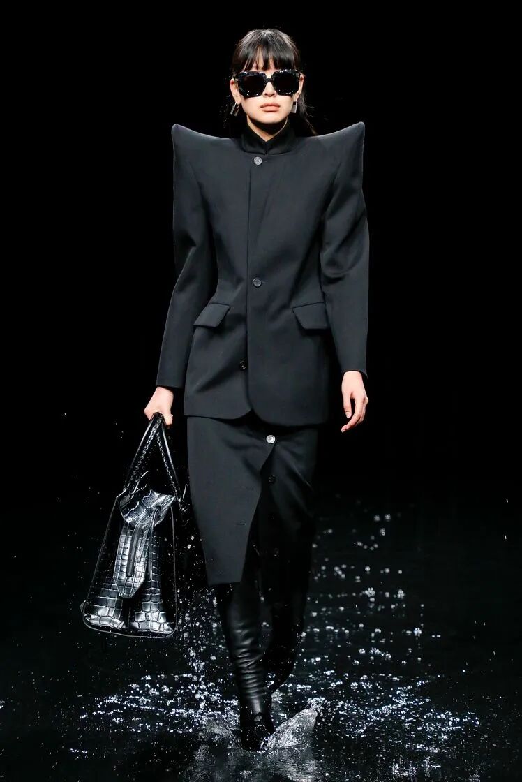 设计上,有实穿的街头风单品,有理念感的实验性套装,Balenciaga标志性的夸张廓形当然也得到了延续,当一身黑色的模特们接连出现时,真有一种探视未来的感觉。