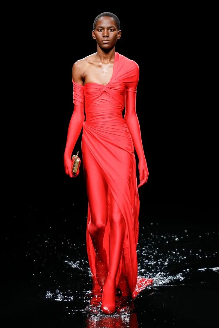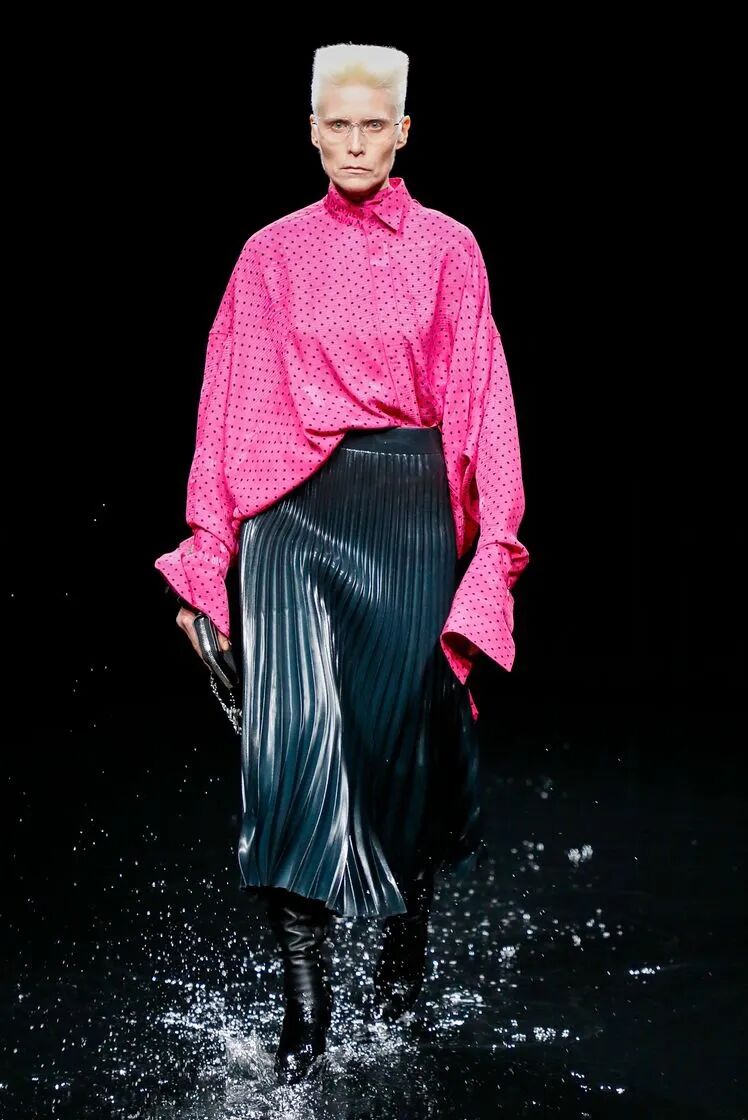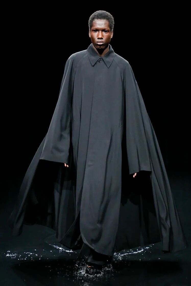 在不同的天气下穿着极简主义与古典主义相结合的时装:高肩设计风衣、越野赛车服、新轮廓剪裁的礼服等。巴黎世家在用一场“末日预言”昭告我们,是时候关注气候问题了!