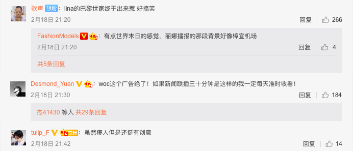 许多网友留言表示“我唯一想看的电视新闻”、“好怪但是好爱“、”这是我看过最诡异的广告“、”主播脸太臭我喜欢“。
