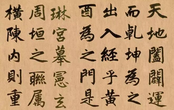 横画轻,竖画重(《颜勤礼碑》的横细竖粗对比十分强烈),但两竖同时出现时,左竖常与横画一样细,且两竖常相向状安排(即拱向外面);转笔常用提笔法,圆转直下,而不作折笔,转折之笔多呈外圆内方等等。