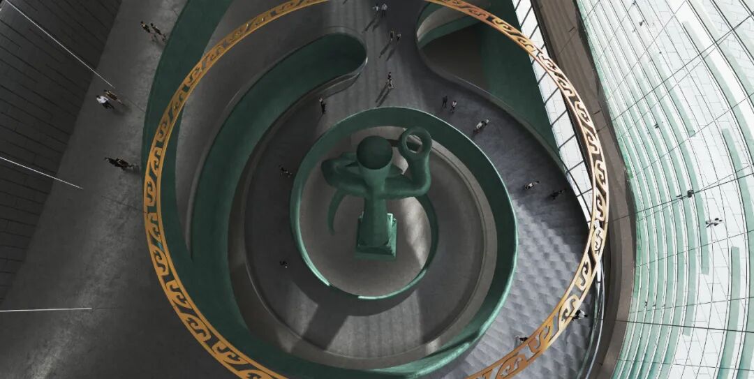 杰典建筑的中英联合设计团队希望三星堆博物馆新馆带来的是一个发现和体验的穿越前世今生的历程。设计采用“以场景取代建筑”的手法,通过空间叙事揭开三星堆曾经神秘的存在又消失了的故事。建筑下“隐”上“显”,以最接近大地的状态回归历史和场地自然文脉。抬起的展厅释放了公共空间、保留了现状的水面、开启了遗址公园与周边自然景观的视觉廊道,且将已消逝的古蜀国文明再次显现于城市尺度。建筑作为文化交流的载体传递了“沉睡数千年,一醒惊天下”的寓意,透过“三星堆之眼”打造“国宝级名片”和“超级文化IP”。