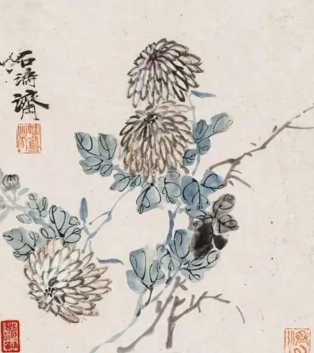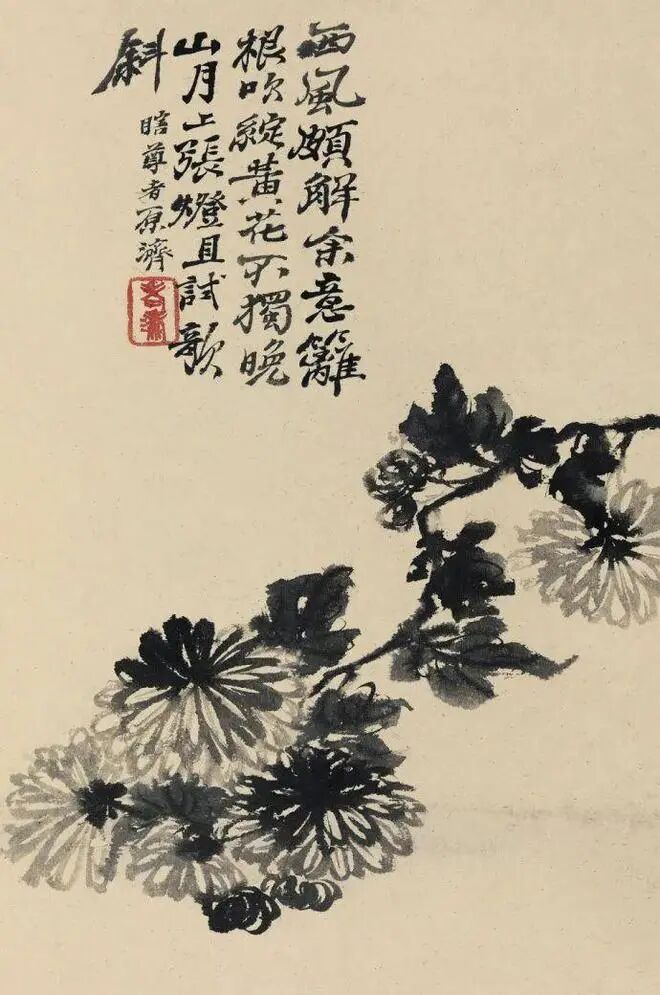 石涛笔下的菊花,是秋天的山沟的天下。在阳光的照耀下,多么迷人,多么耀眼,多么令人赞叹!