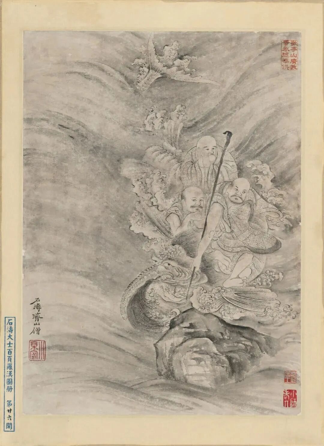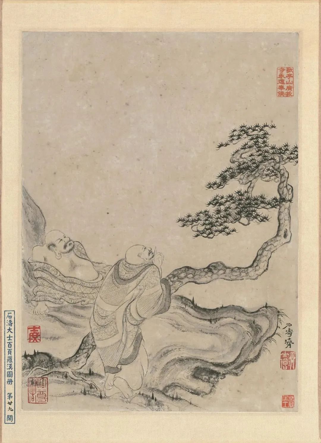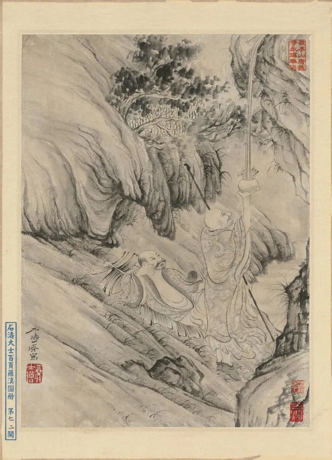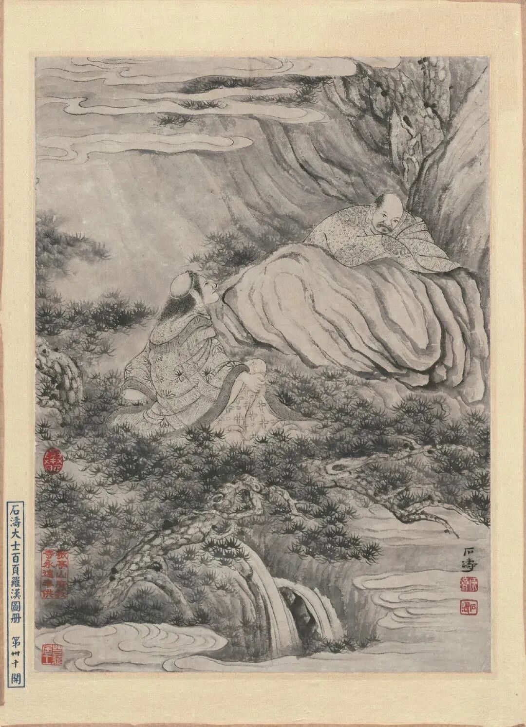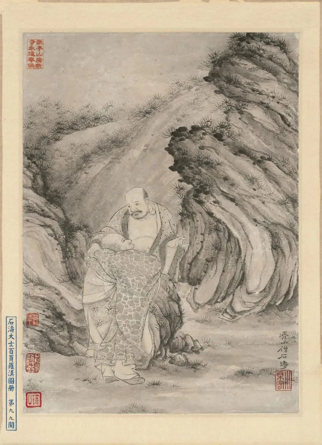 石涛(1642一约1707),清代画家、中国画一代宗师,法名原济,一作元济,本姓朱,名若极,字石涛,又号苦瓜和尚、大涤子、清湘陈人等。明靖江王后裔,幼年遭变后出家为僧,与弘仁、髡残、朱耷合称“清初四僧”。