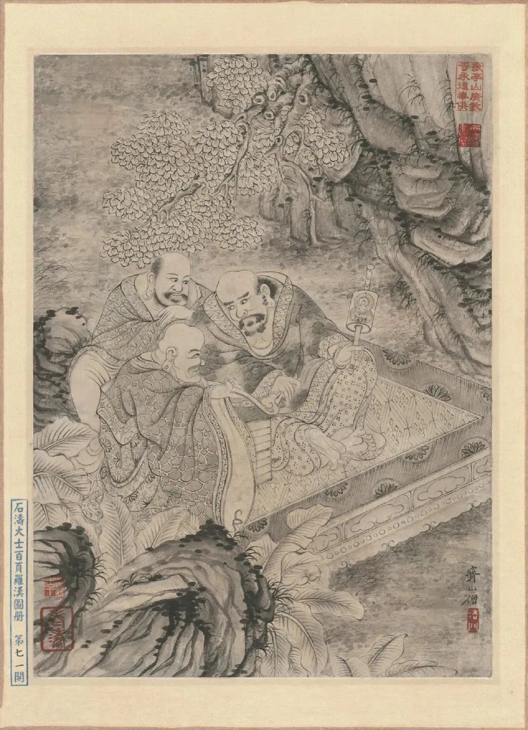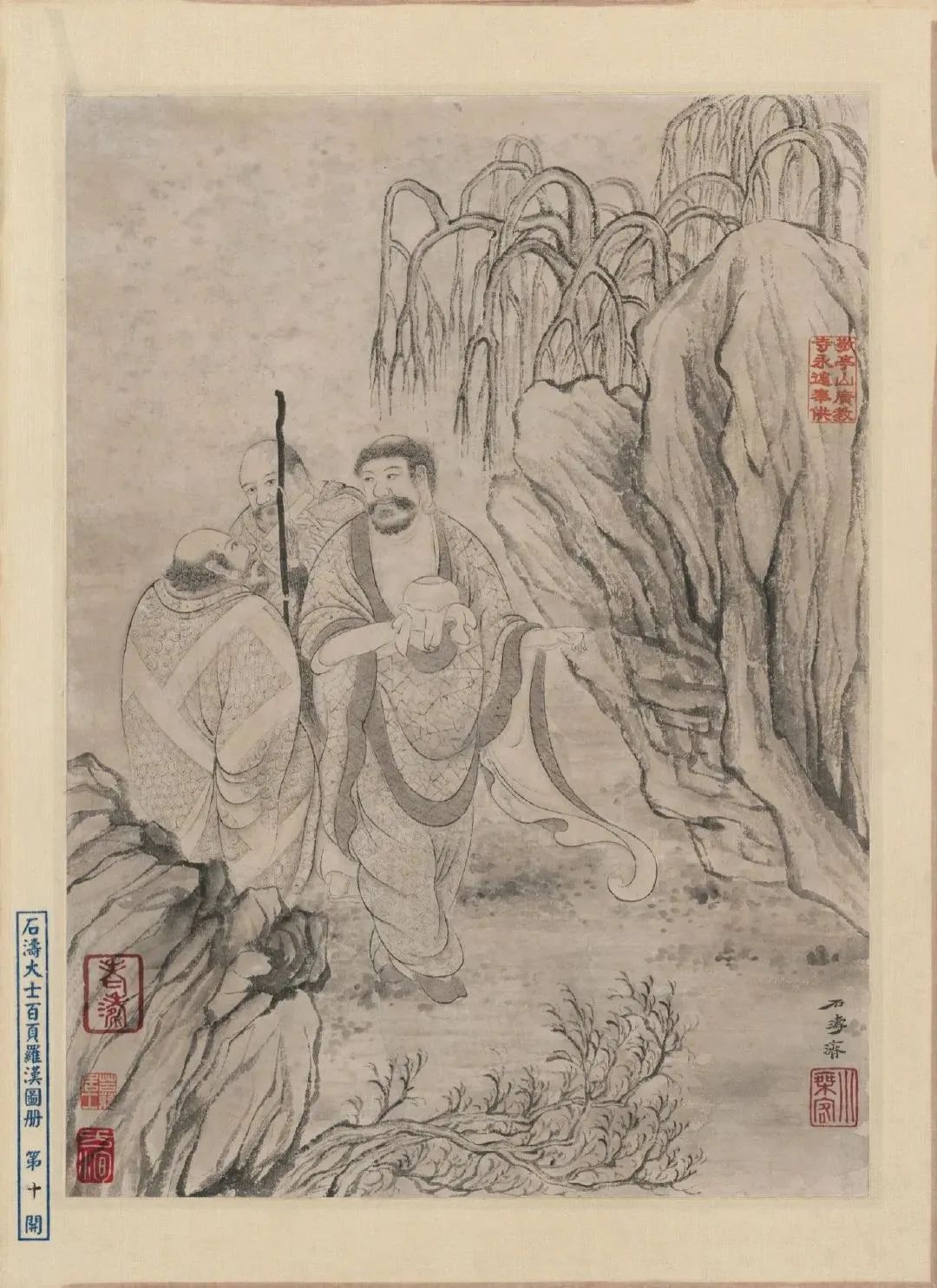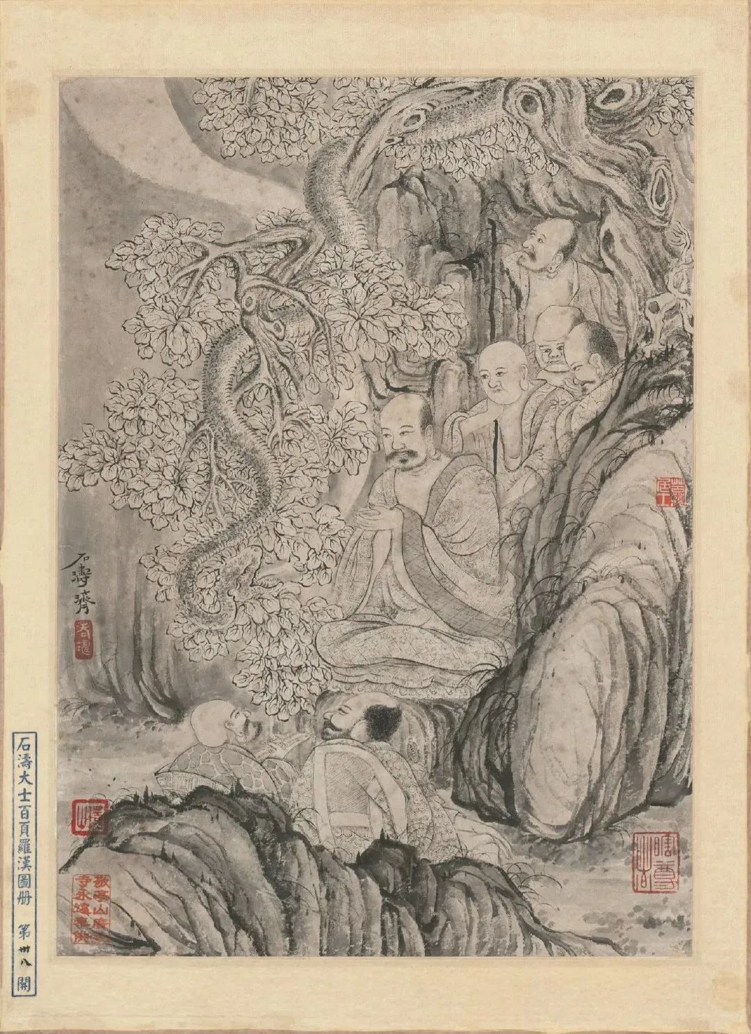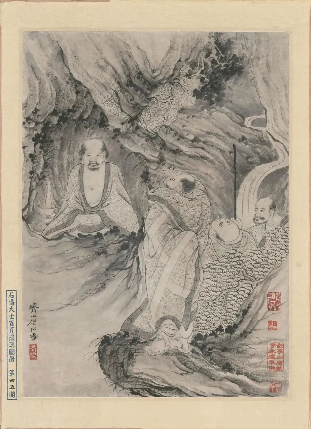 石涛(1642一约1707),清代画家、中国画一代宗师,法名原济,一作元济,本姓朱,名若极,字石涛,又号苦瓜和尚、大涤子、清湘陈人等。明靖江王后裔,幼年遭变后出家为僧,与弘仁、髡残、朱耷合称“清初四僧”。