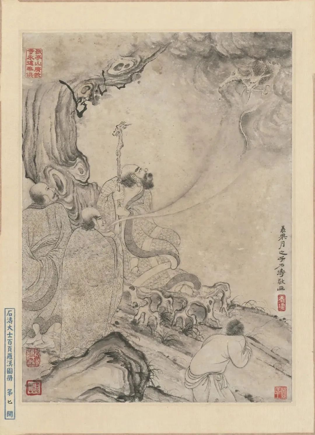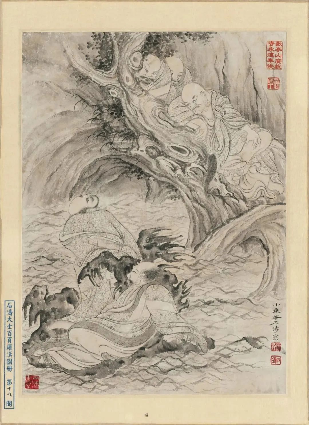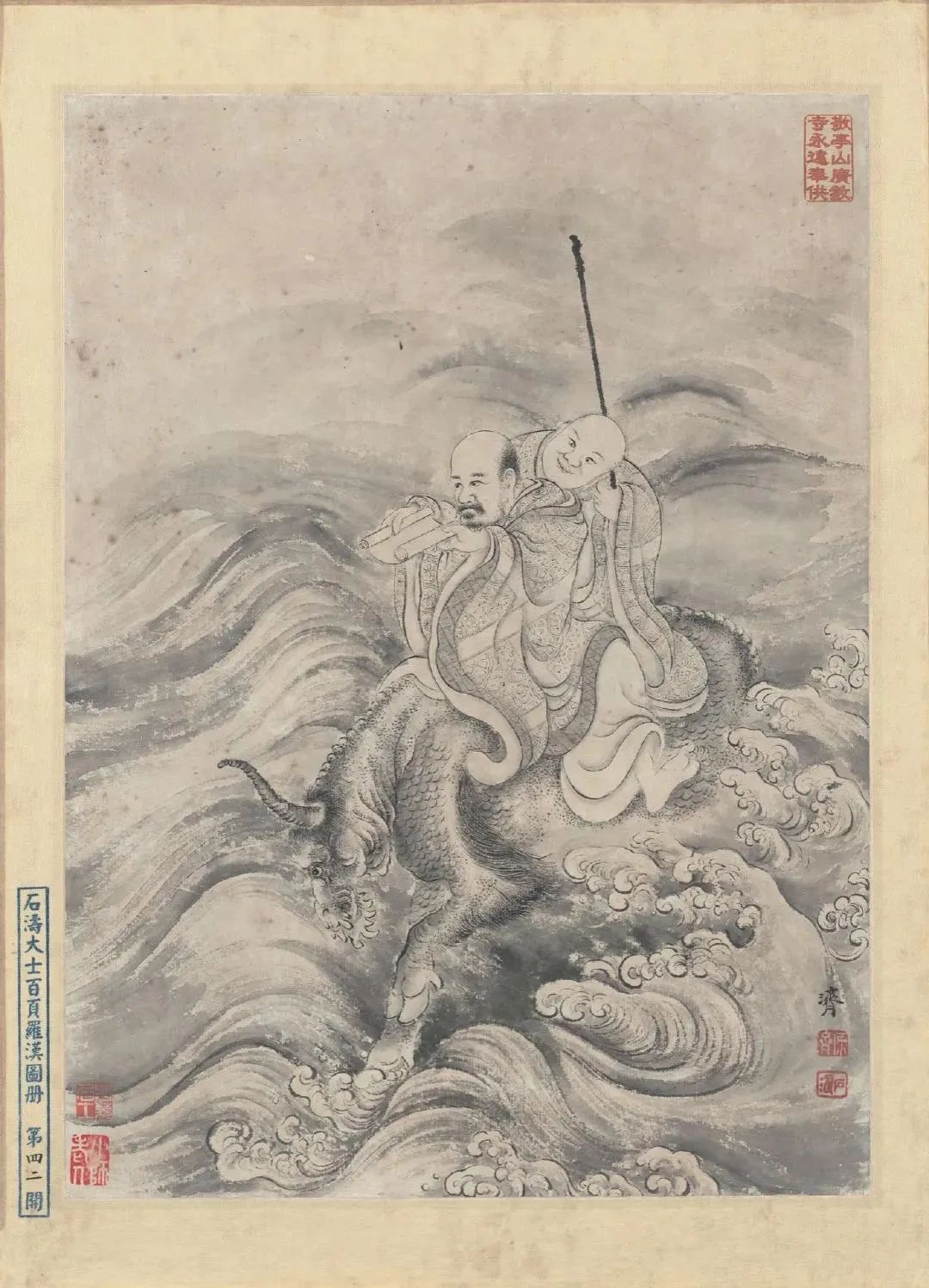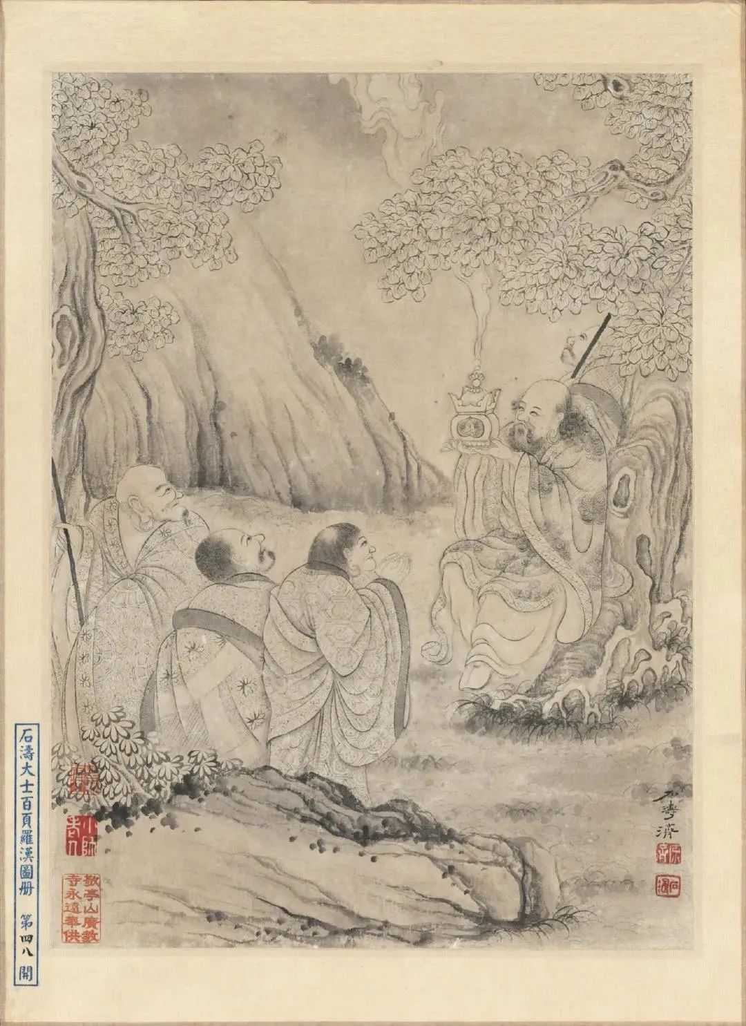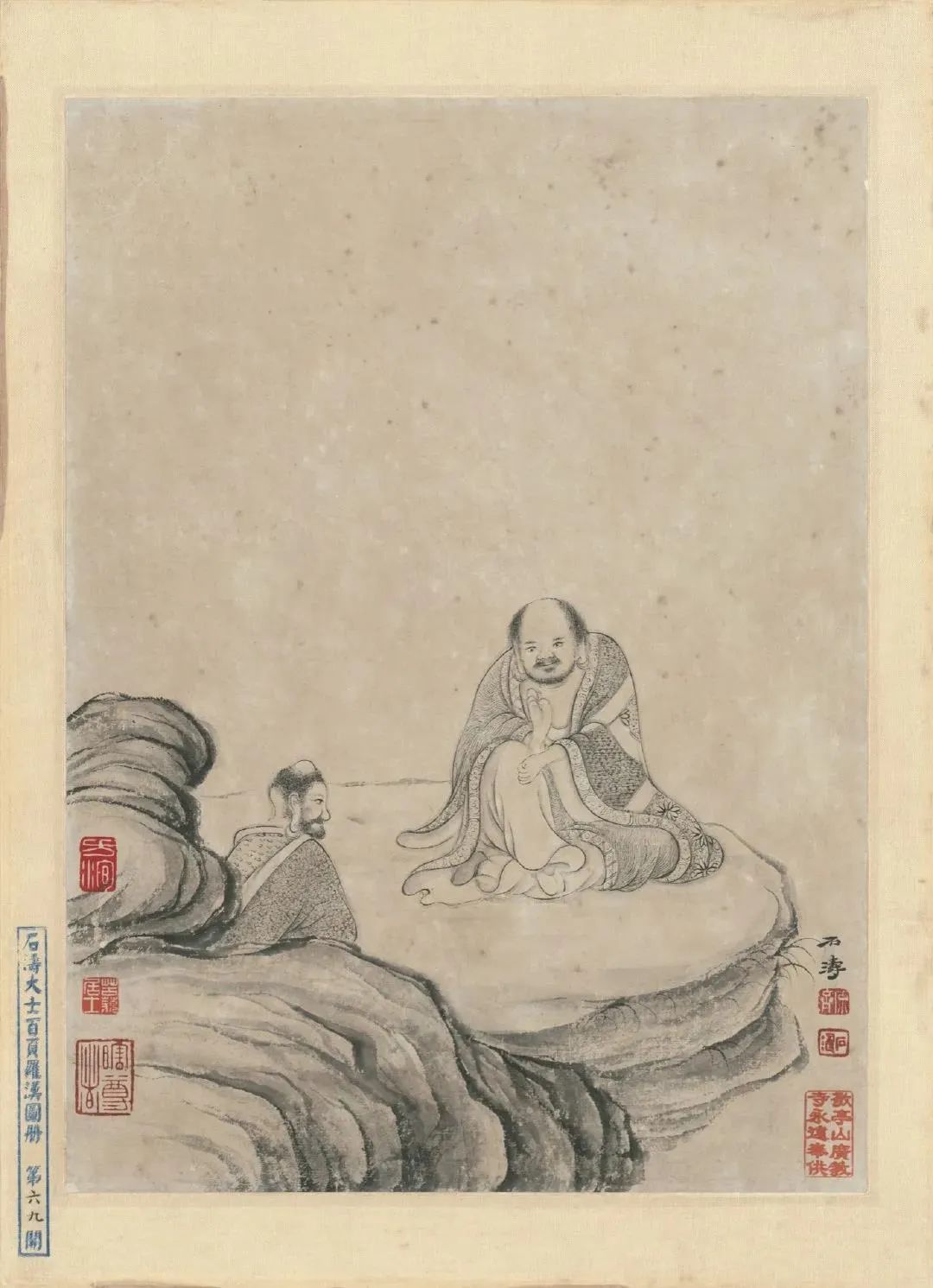 石涛(1642一约1707),清代画家、中国画一代宗师,法名原济,一作元济,本姓朱,名若极,字石涛,又号苦瓜和尚、大涤子、清湘陈人等。明靖江王后裔,幼年遭变后出家为僧,与弘仁、髡残、朱耷合称“清初四僧”。