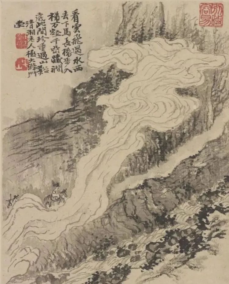 最新文章2023-05-15 石涛的云 石涛年少时国破家亡,逃亡后不得已削发为僧,他从禅门转入画道,画风似有一种超凡脱俗的意境,无论是山水、人物,还是花卉、走兽,都有很高的艺术造诣。 石涛在中国山水画史上有一大创造,在于把原来晴朗天气下的山水转化为风雨晦暝的面貌,从而为山水画的发展创造了新格局,可谓是前无古人,后启来者,石涛这种千变万化的奇幻景致,给观者以云穷水尽处窥见无限天机的遐思。 石涛大半生登山涉水,他曾辗转于广西、江西、安徽、江苏、浙江、陕西、河北等地,到晚年才定居扬州。他一生中大部分时间都生活在气候湿润的南方,因此看他的画总有一种下过雨的感觉。 黄山的奇秀、潇湘的清美、江南的绮丽,无不浸润在这此云烟之境里,诗意盎然,满纸墨光,包孕万千,韵味十足! 行到水穷处,坐看云起时。 《看云图》此画长近四尺,宽近二尺,作于清代皮纸上,全画以水墨为之,层次井然,内容丰富,静中有动。一高士侧坐于石颠,坐观山川烟云,浅滩流云,杂树丛生,墨气氤氲,全幅淋漓的水墨和烟云弥漫相映衬,营造出一种亦晴亦雨的奇境。 目尽钟山百代幽,白云不住剩空楼。城头鼓角悲风起,塞上烽烟壮士休。北去龙游生旱气,南来卧虎定高秋。昨闻太白经天论,可是黄河彻底由。 本文来自微信公众号“艺术家”(ID:gblysj)。大作社经授权转载,该文观点仅代表作者本人,大作社平台仅提供信息存储空间服务。 TAGS: 水墨烟云石涛穷雨 相关文章英赫日报 | 李宁 × 空…米兰时装周的异星来客,用结…米兰“MoLo”移动与物流…西班牙艺术家 Juan d…把小鸟画成美少女,她弃医从…这些鸡蛋包装不只是有趣,设…国产文具又炸了!晨光再造“…七点资讯 |《更衣人偶坠入…AlphaDraw筑绘通「…秦始皇的黑,是你不懂的黑。