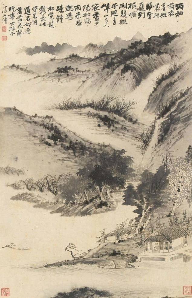 幼年遭变后出家为僧,驻锡于安徽宣城敬亭山广教寺,后半世云游,以卖画为业。早年山水师法宋元诸家,画风疏秀明洁,晚年用笔纵肆,墨法淋漓,格法多变,尤精册页小品;花卉潇洒隽朗,天真烂漫,清气袭人;人物生拙古朴,别具一格。工书法,能诗文。