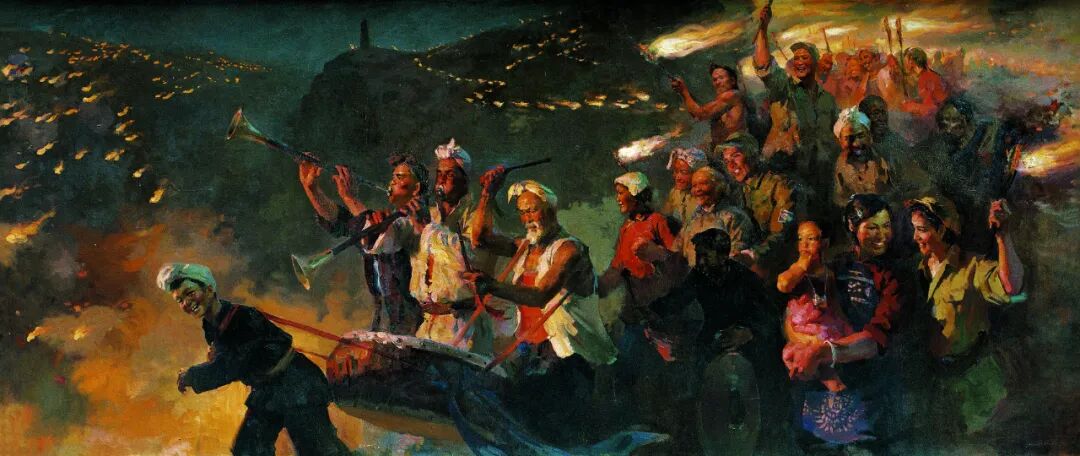 蔡亮《延安火炬》布面油画 282×164cm 1960年 中国人民革命军事博物馆藏