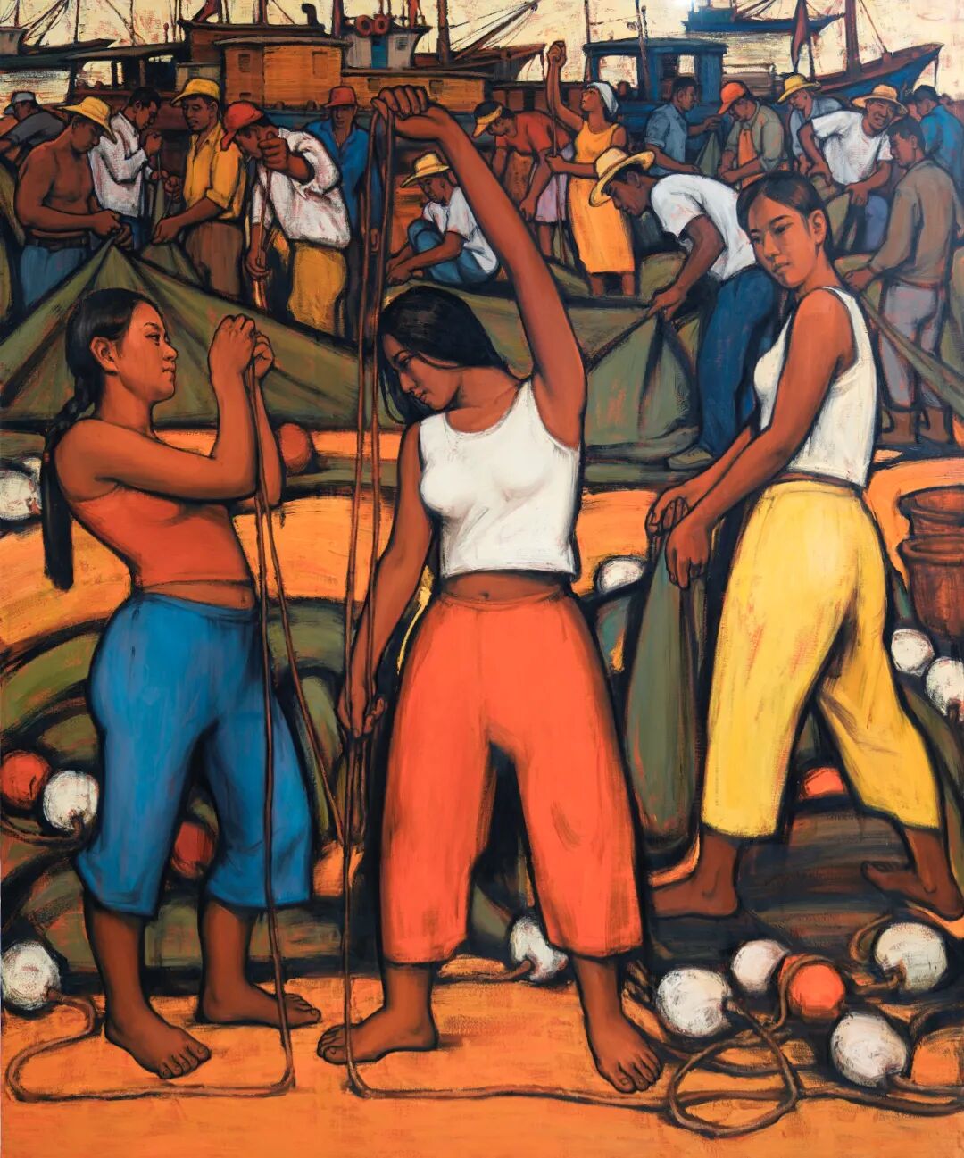 陆琦《东海渔人——整理渔网》布面油画 230x190cm 2022年 自藏