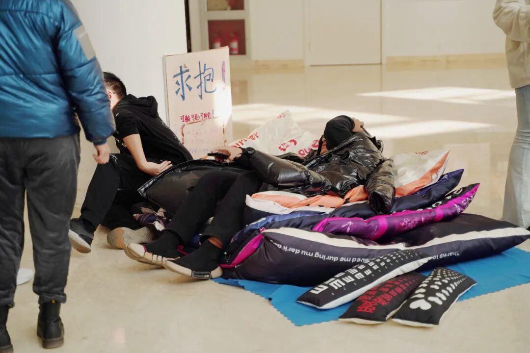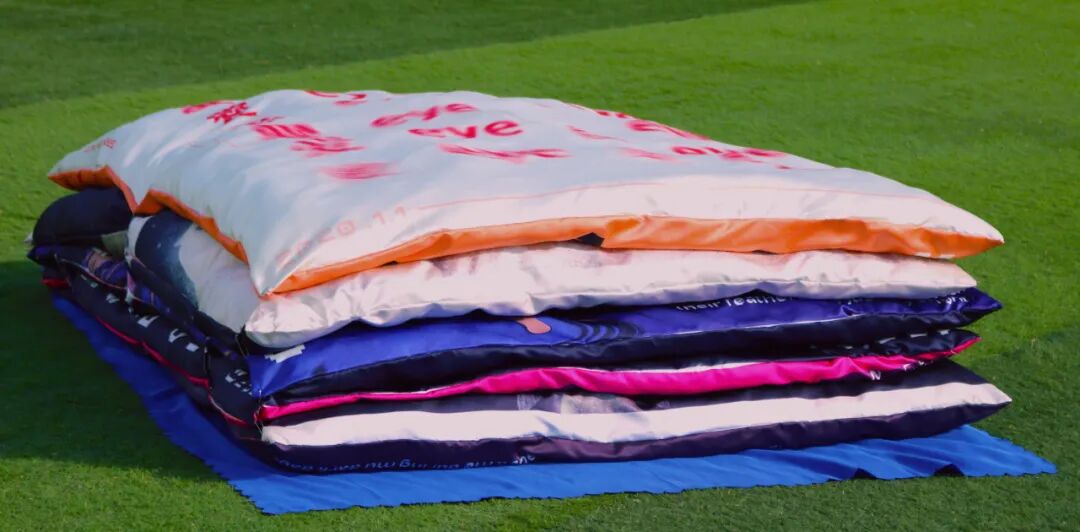 我决定做这个项目的时候是在床上,刚做了一个噩梦起来,全身赤裸而我第一个反应就拿被子把自己盖起来,所以我想被子作为一个柔软的媒介更能传递出这种细小但是又必不可缺的爱。