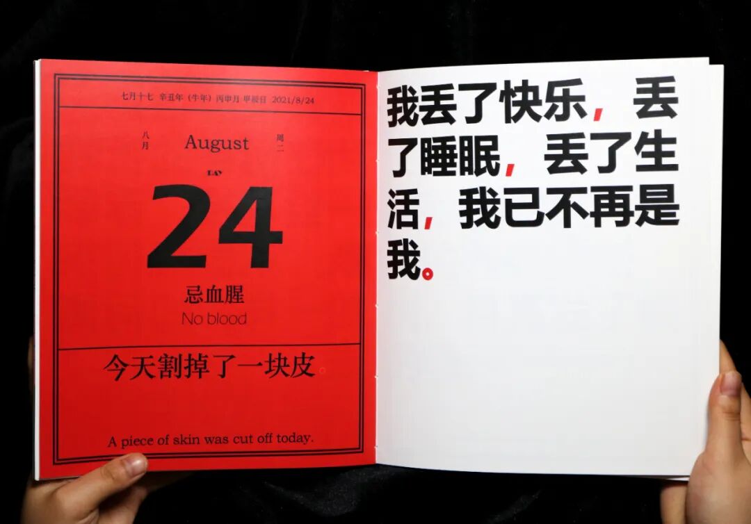 在这本书中的后半部分,全部文字来源于她的日记。日记一共记录了她在遭遇性侵后117天内的所有感受,在最后一天她决定自杀离开这个世界。而在我参加她的葬礼后两天,才收到了她的日记,我整理文字后编辑在这本书里。每一张文字都让人感受到无比痛苦。