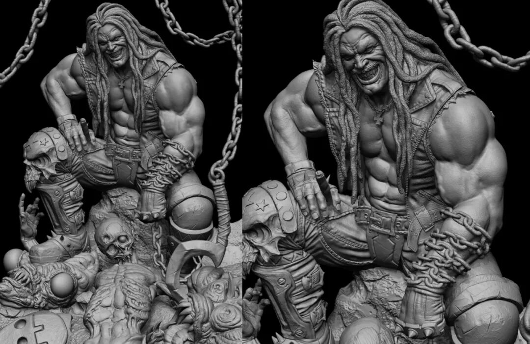在制作流程上,Raf会是使用ZBrush雕刻,Arnold或者3ds Max渲染和Photoshop绘制,最终呈现的结果是雕刻和绘画的混合。精细的毛发细节和肌肉线条的力量感,让人看得血脉偾张!