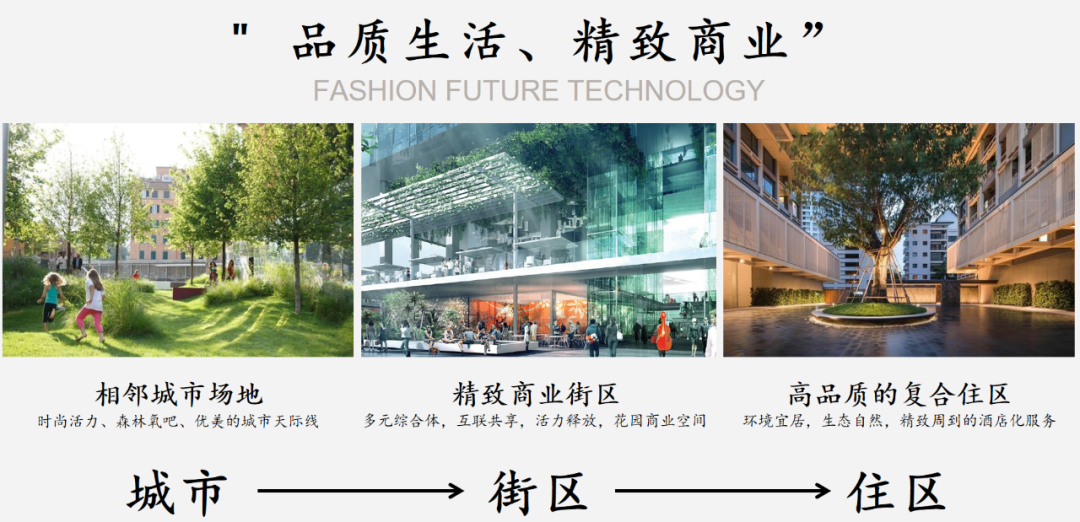 新时代下传统商业模式已不尽合适,随着互联网的普及,人们的消费习惯发生了新的变化,网红店、口碑、IP效应等成为关键,消费习惯越来越具有目的性而有别于传统的随机性,因此商业项目有必要通过理性的设计来指导商业运营的逻辑,需要优先考虑创造适宜人活动以及能承载多种商业活动的场所,同时做为商住一体的社区,这类活动场所亦可满足未来生活场景的展示。