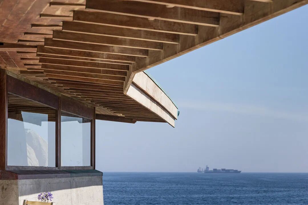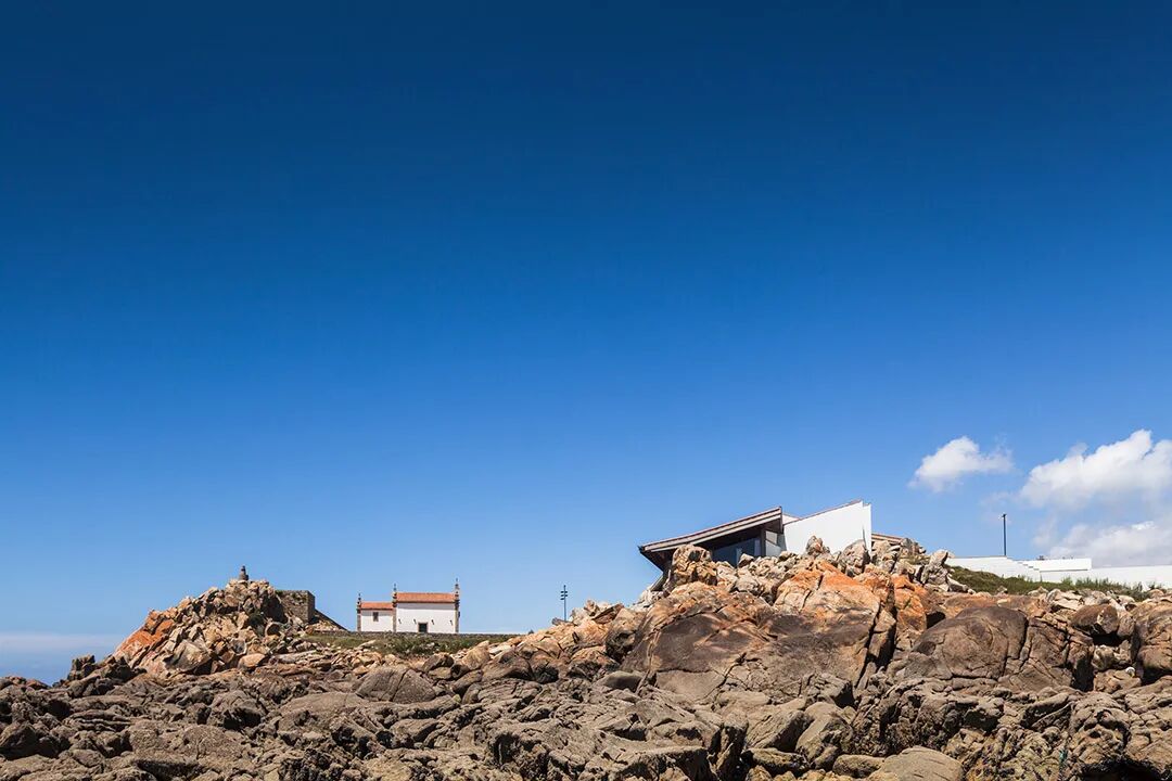 其次,透过材料,建筑既融合了景观,又从景观中升起。建筑主体的混凝土墙与海边礁石的颜色非常相似,让建筑类似于插到岩石当中。